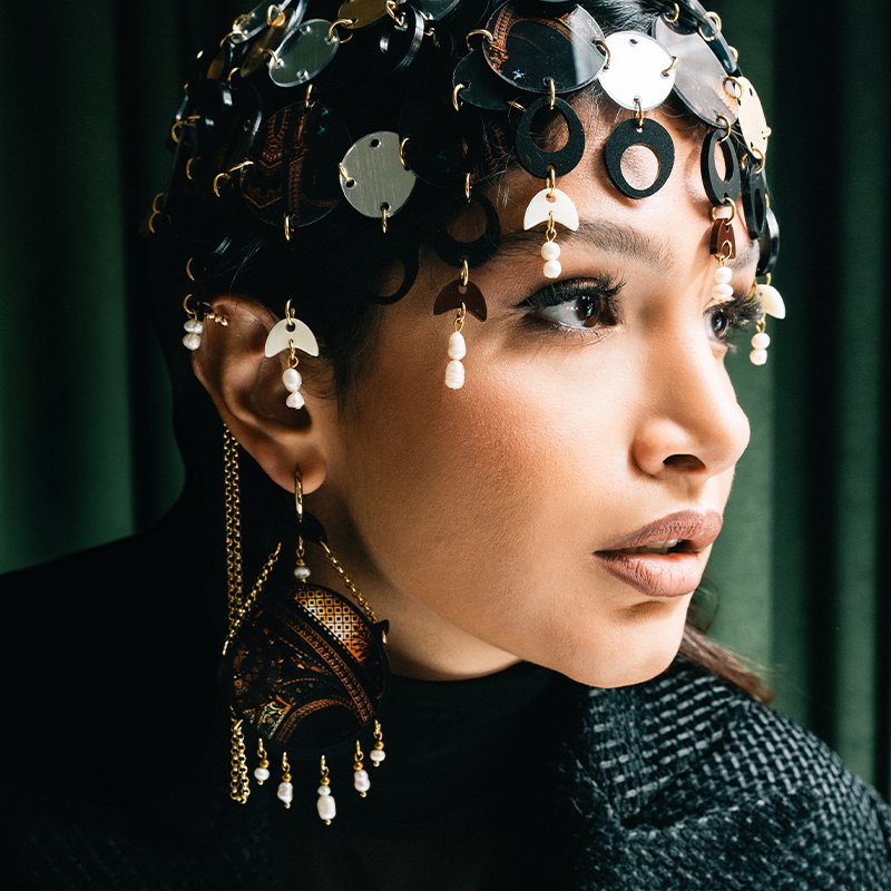 Baroque Collection - Arghavan Roozbeh | Helia Golbinrad - Winter 1402The Baroque collection, designed by Helia Golbinrad, was inspired by her personal passion for Italy, particularly its churches and artwork. After studying the architecture and designs of the period, the decision was made to explore the Baroque era. Characterized by bright colors, contrasts, twists, curves, fragmented and unfinished patterns, oval domes, and wall murals, these elements are prominently featured in the design of these earrings. The images you see on the earrings are inspired by Baroque architecture in cities around the world, including the Palace of Versailles (France), St. Paul's Cathedral (London), St. Carlo Church (Rome), and St. Charles Church (Vienna). This collection includes two double-sided earring designs, where one side features paintings and the other side showcases Baroque stucco patterns. The use of golden tones and Baroque pearls evoke the essence of the era. The addition of ear cuffs (a trend for 2024) blends traditional Baroque influences with modern design, capturing the unique fusion of old and new that defines the brand's aesthetic.