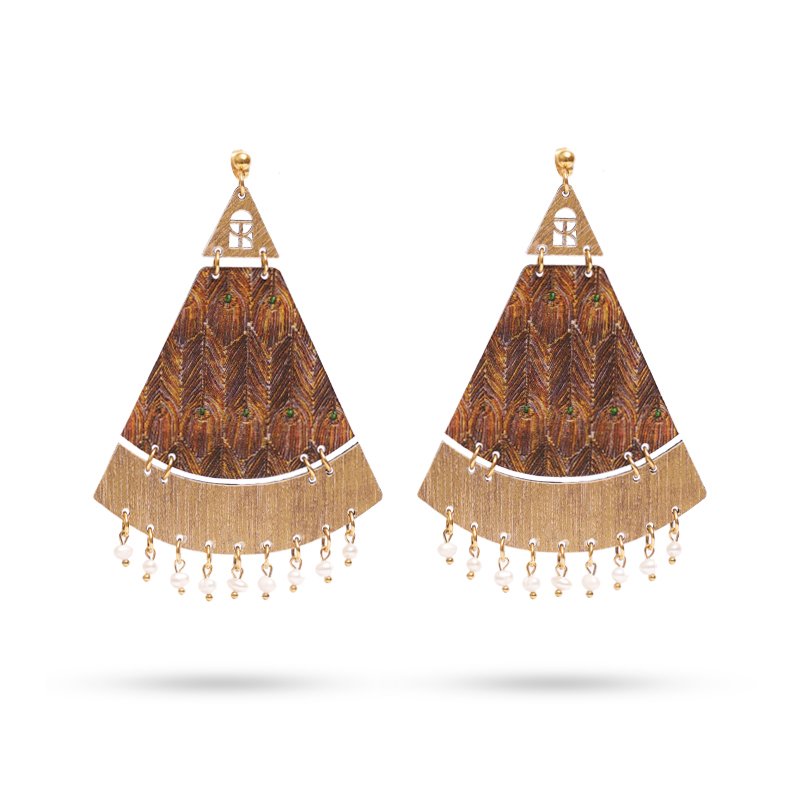 Part of the Chelcheragh Collection by Arghavan Roozbeh and Sogol Hosseini for Fall 1402, these chandelier earrings are crafted from plexiglass, cultured pearls, and stainless steel. Designed for the earlobe with a push-back closure, they measure 2.36 inches wide and 4.33 inches high. Each piece is handmade with meticulous attention to quality and detail. To maintain their condition, avoid applying pressure, keep away from perfumes and sprays, and clean gently using a microfiber cloth with water or alcohol.