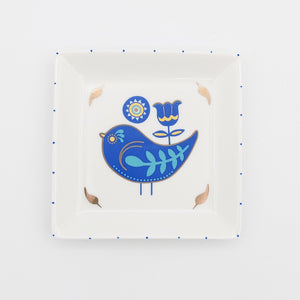 Blue Bird Square Jewelry Dish with Gold