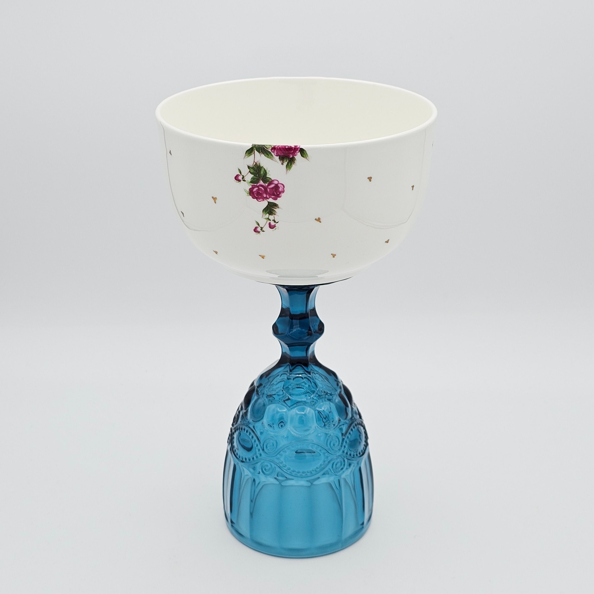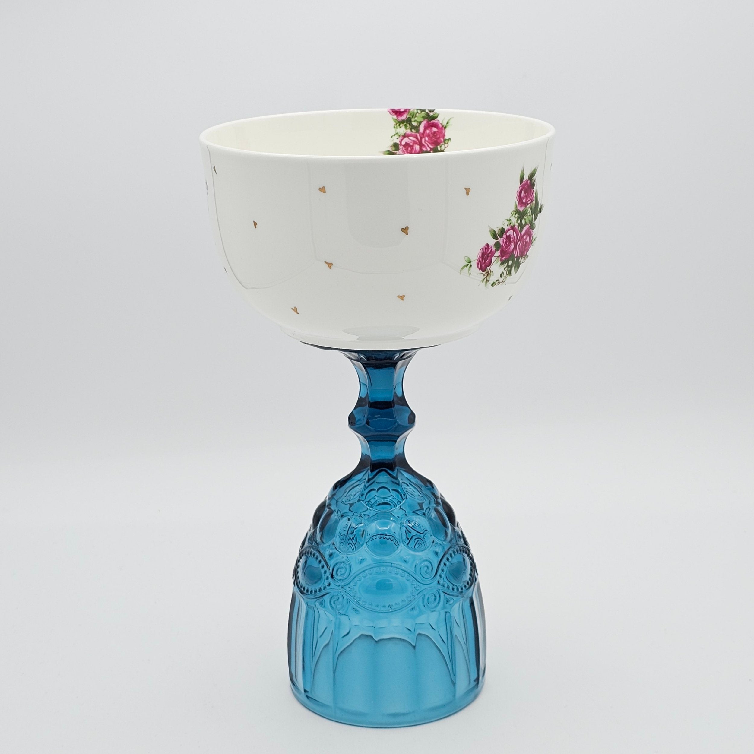 Golesorkhi Bowl With Blue Glass Stand and Gold Touches