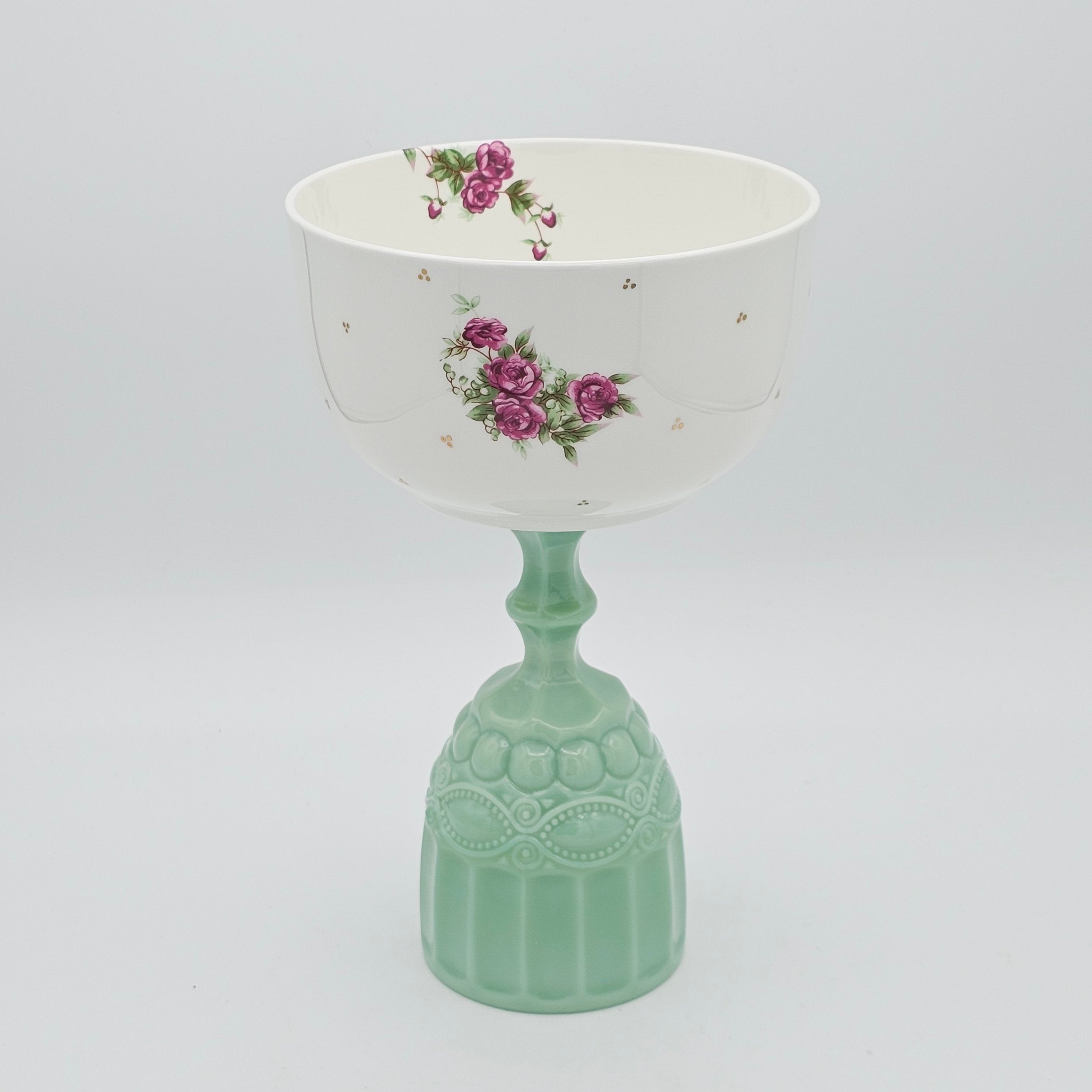 Golesorkhi Bowl with Glass Stand with Gold Touches