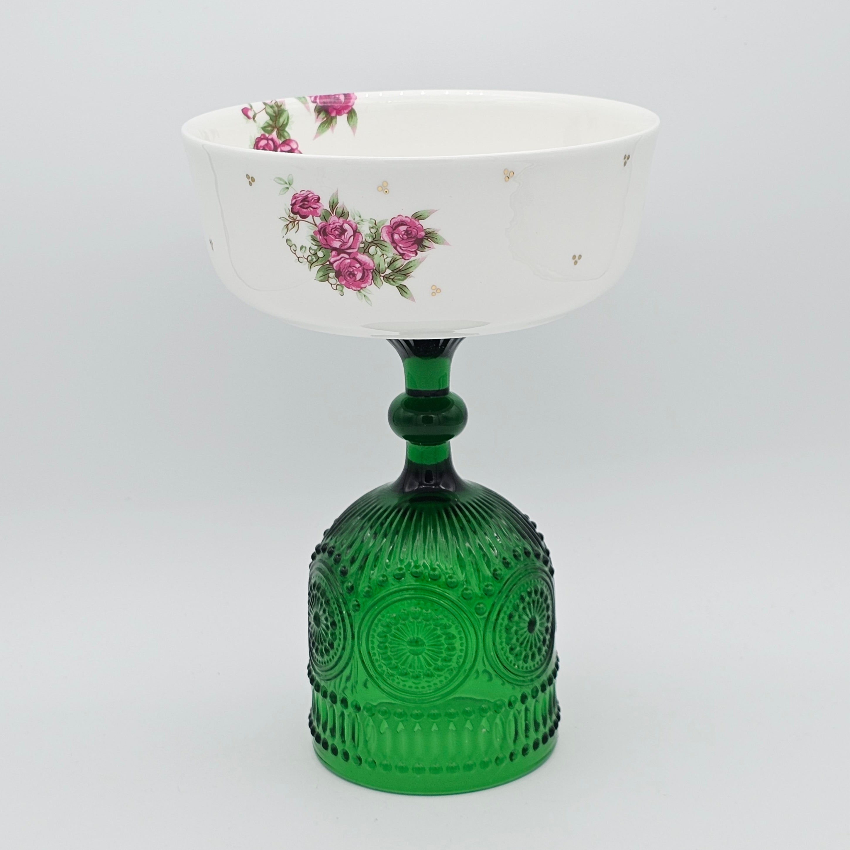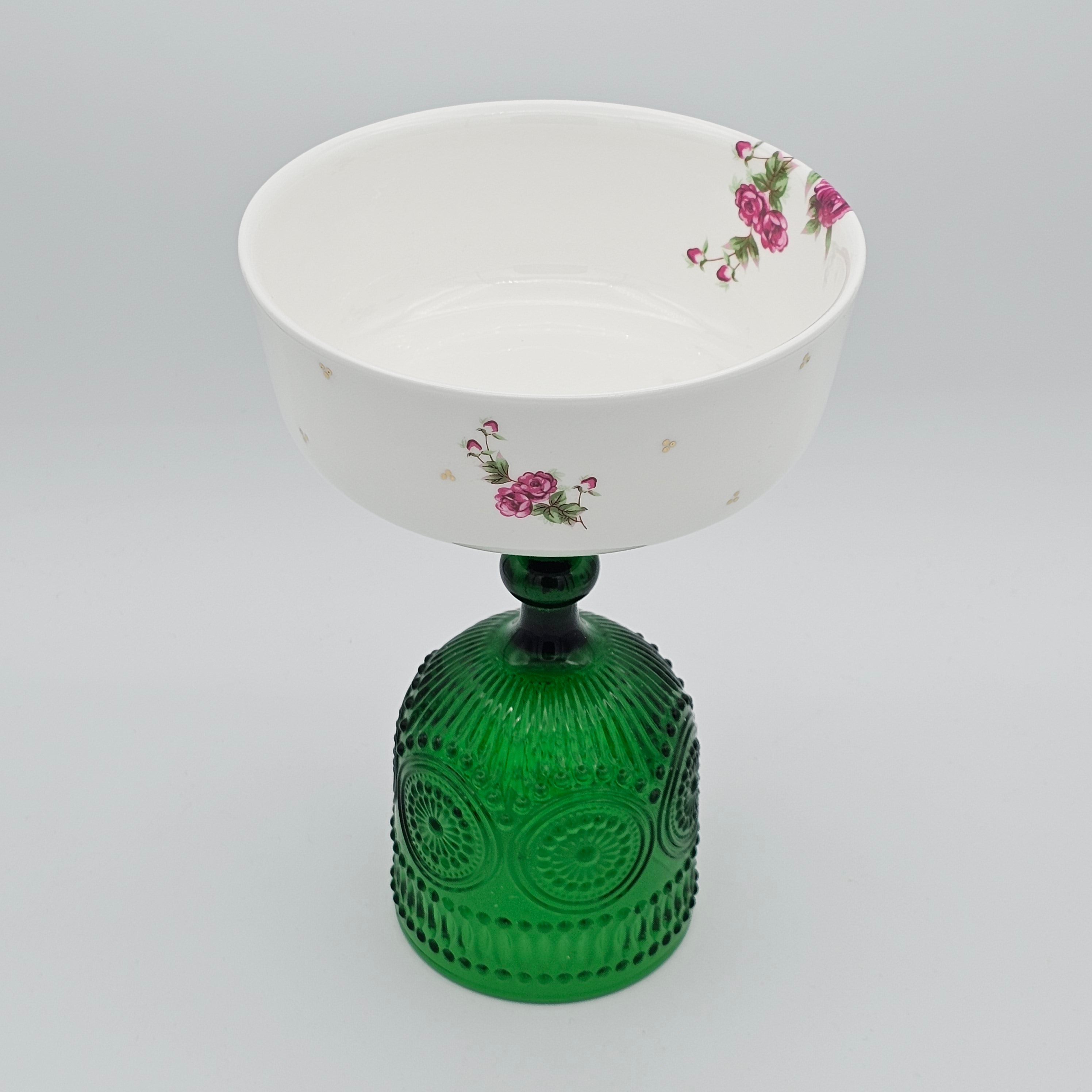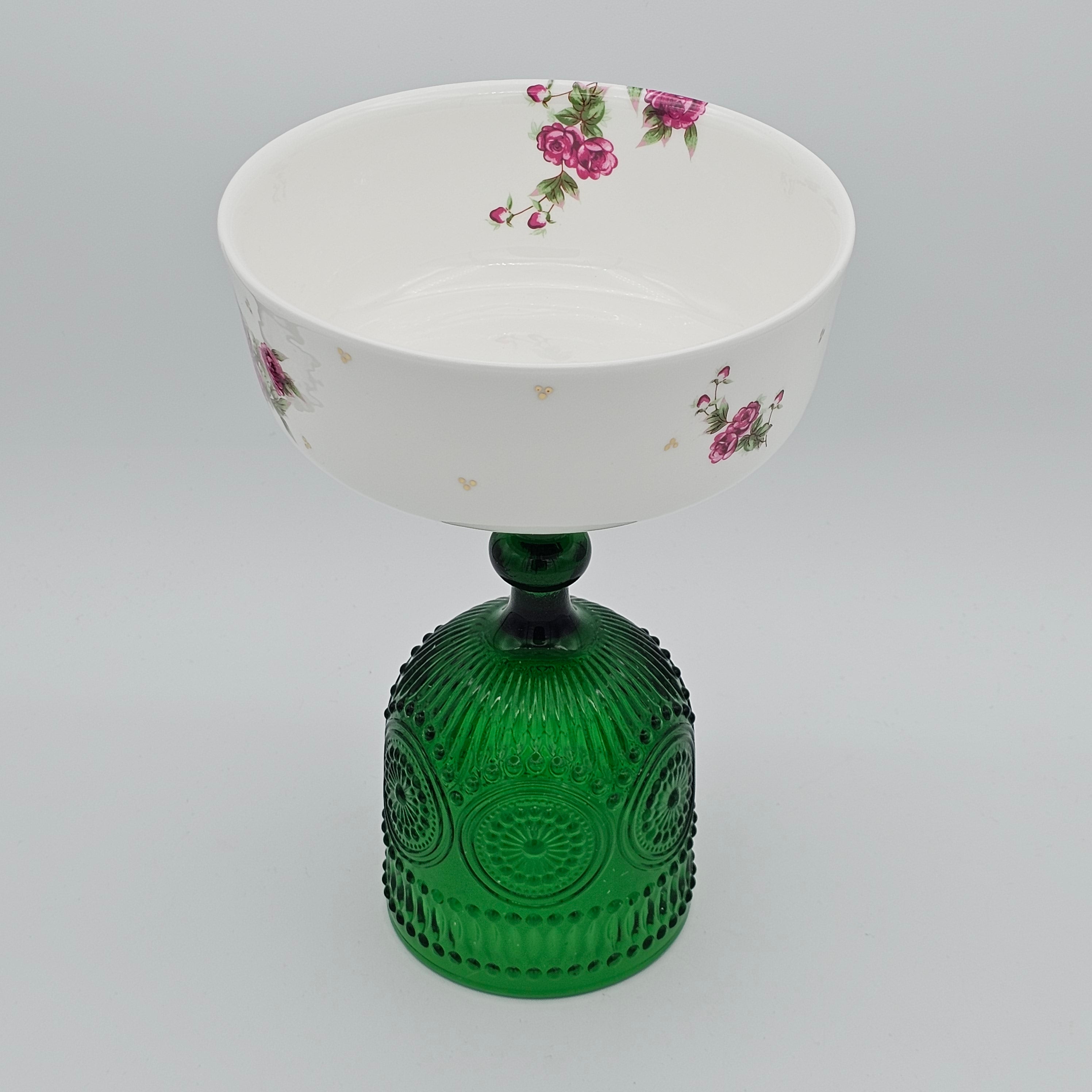 Golesorkhi Bowl With Gold Touches & Green Glass Stand