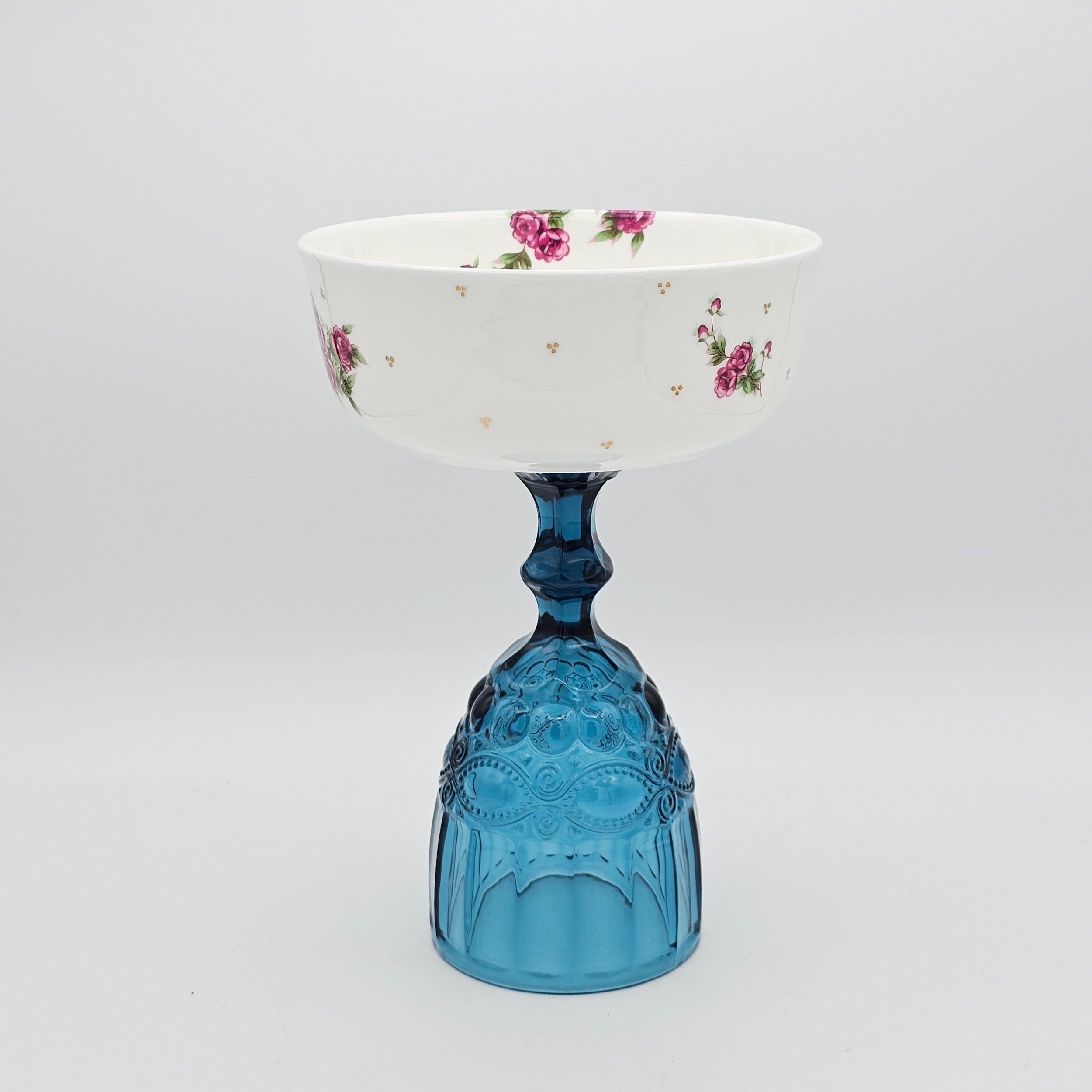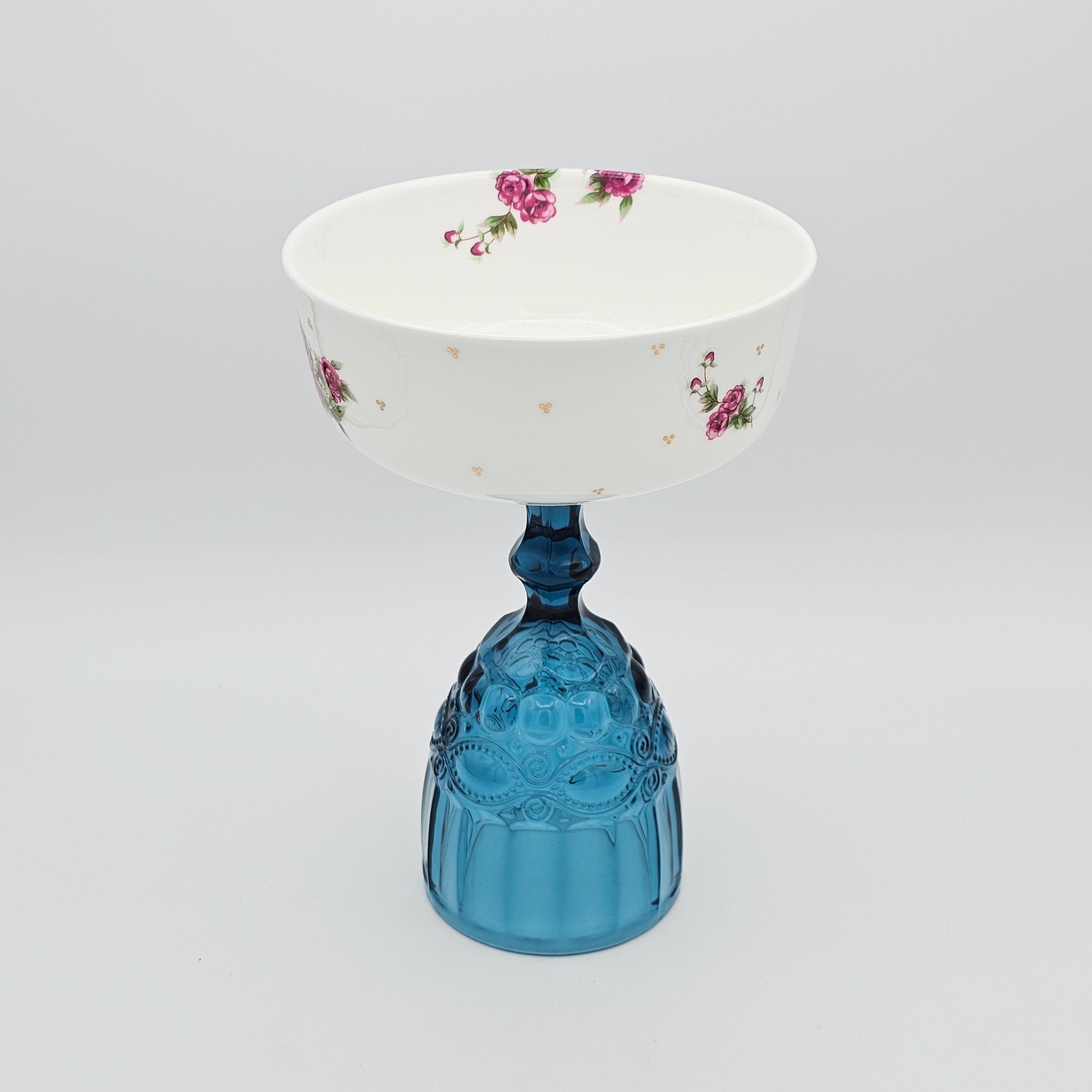 Golesorkhi Shallow Bowl With Blue Glass Stand and Gold Touches