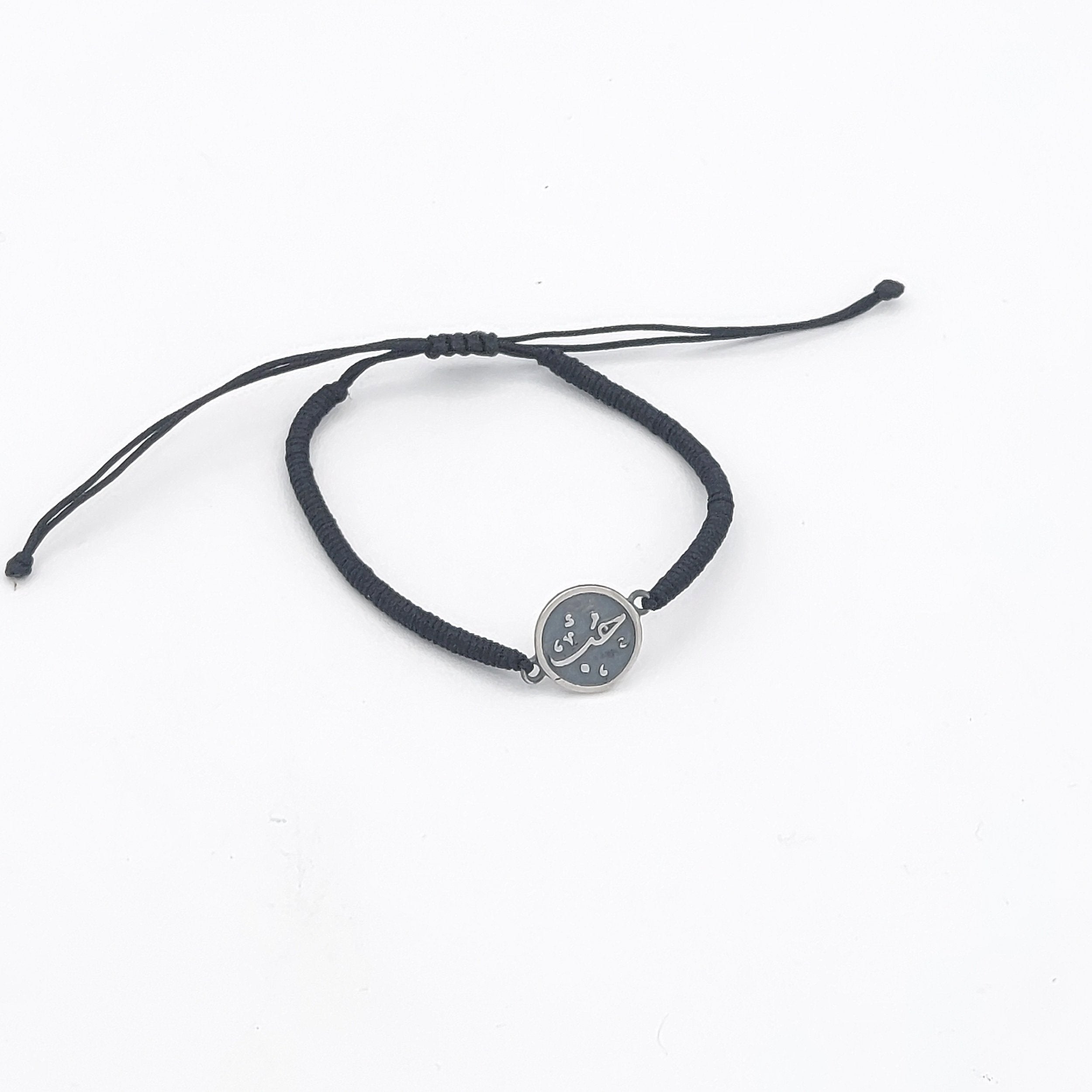 Crafted with precision, this Farsi Hobb Bracelet features a minimalist design made from high-quality silver. Its handmade rope slider allows for an adjustable fit, suitable for all wrists. The slide lock closure ensures secure wear, making it ideal for daily use or layering with other pieces. The charm measures approximately 0.5 by 0.5 inches, highlighting fine craftsmanship and attention to detail in every element.