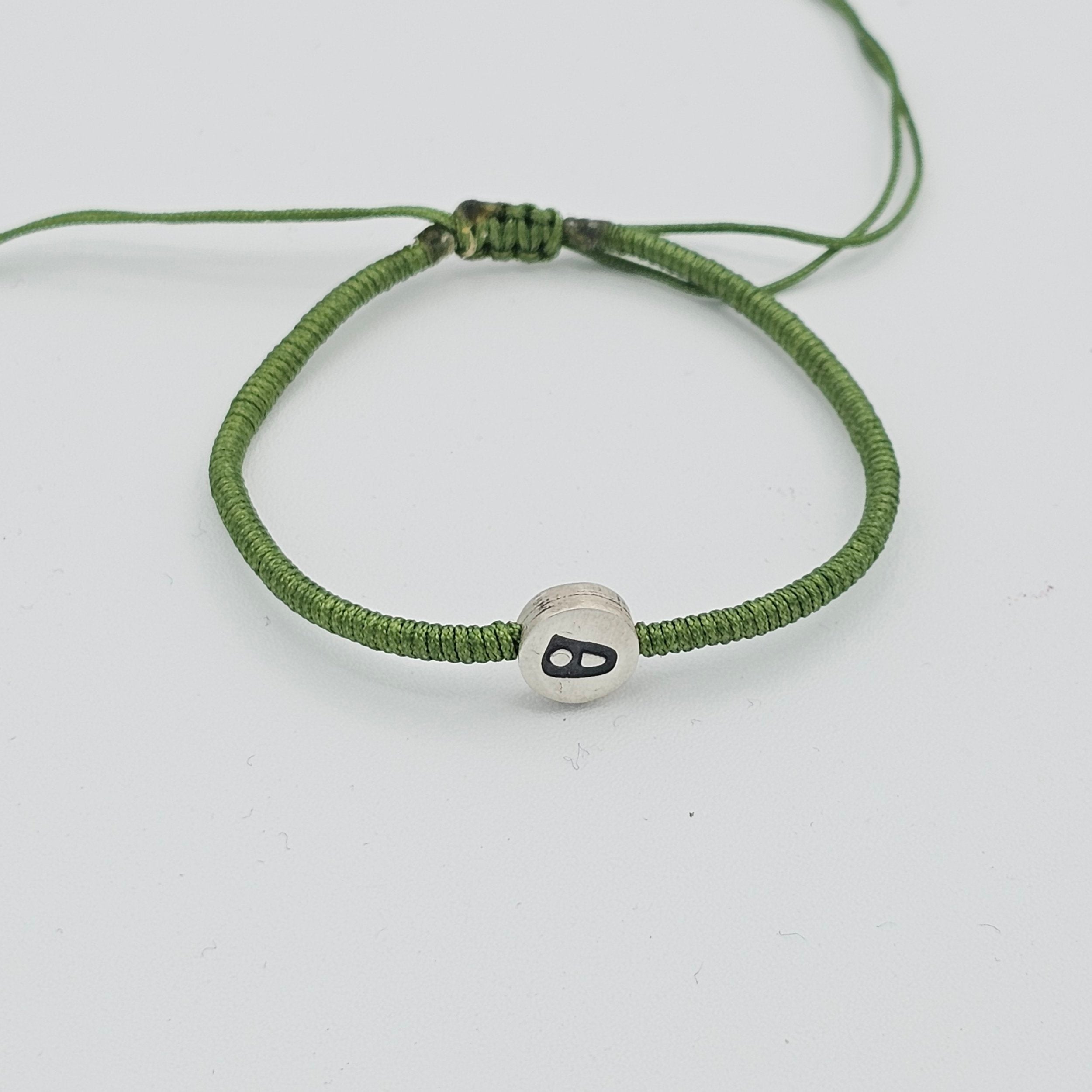 This handcrafted silver bracelet features a rounded Farsi letter charm, available in five distinct designs. Made from high-quality silver with a slide lock closure, it offers an adjustable fit suitable for all wrists. Its minimalist style makes it ideal for daily wear and layering with other pieces. The charm measures approximately 0.25 by 0.25 inches, reflecting meticulous craftsmanship and durable materials for lasting elegance.