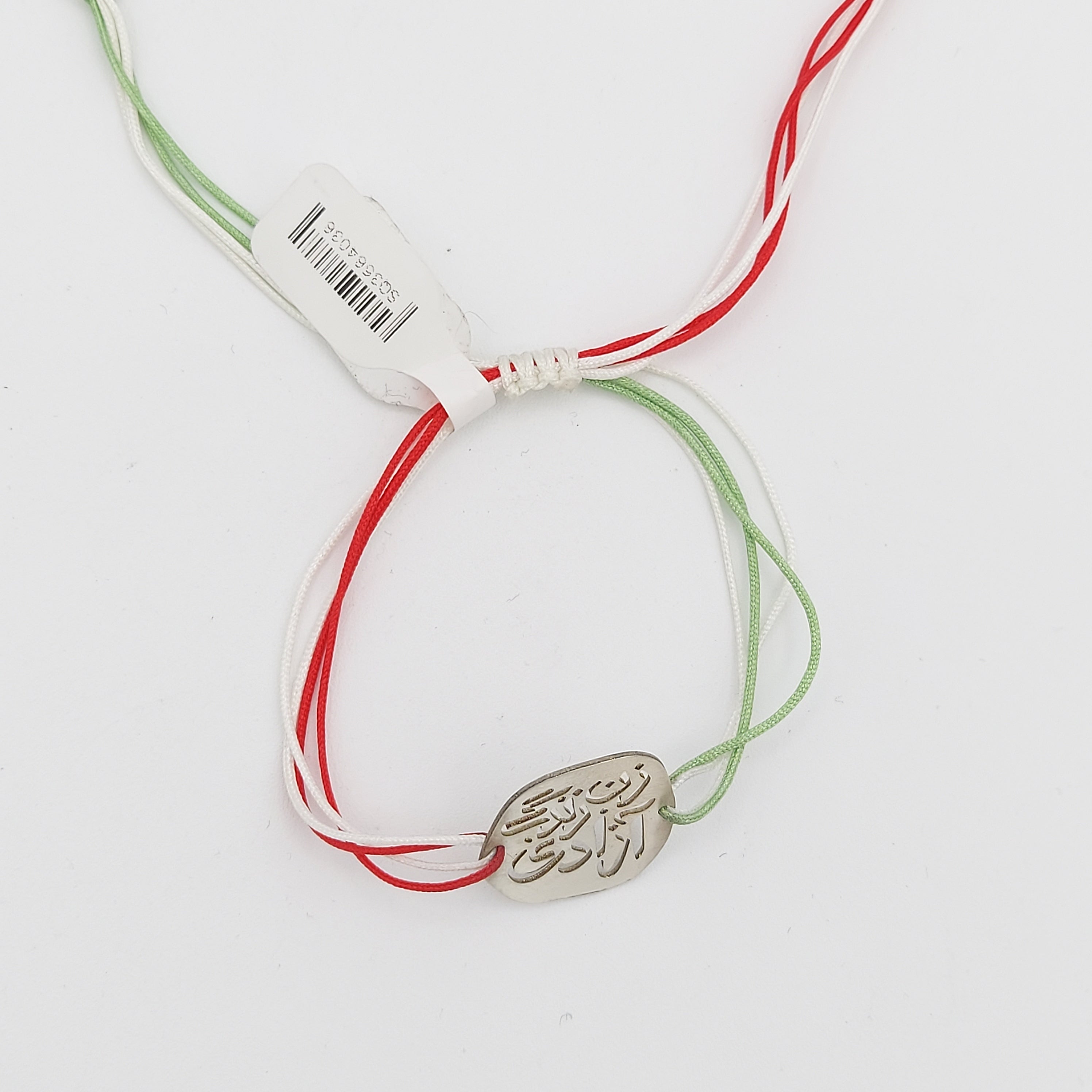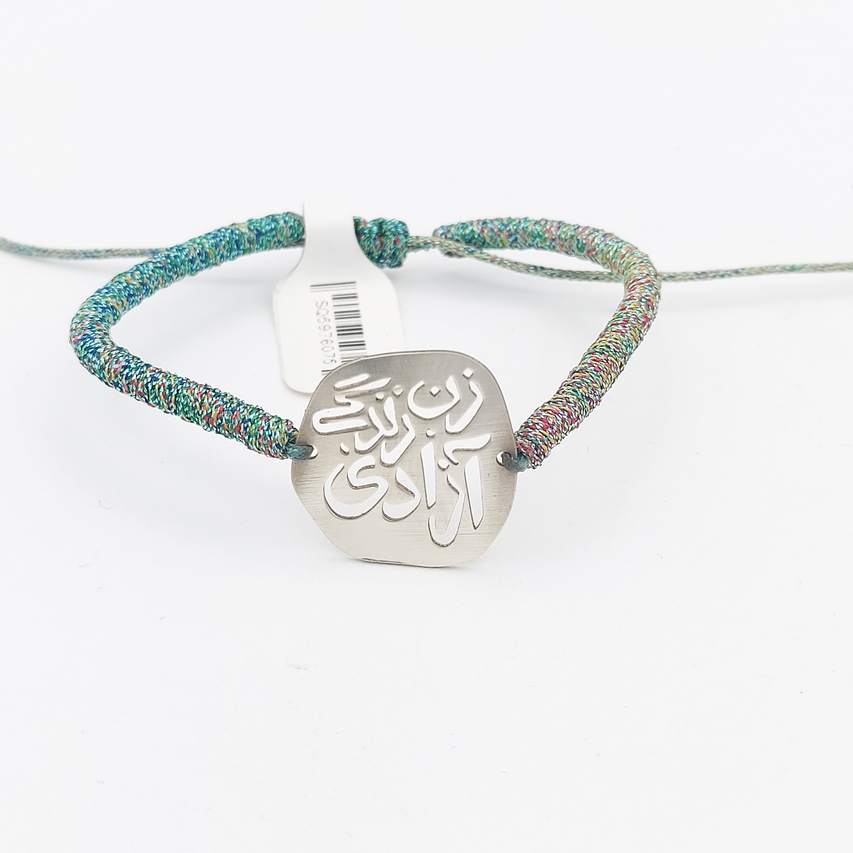 This silver bracelet, featuring Woman, Life, Freedom (Zan, Zendegi, Azadi)