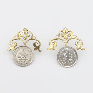 Pahlavi Coin Brass Earring Persian Motif