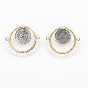 Pahlavi Coin Brass Earring with Pearl