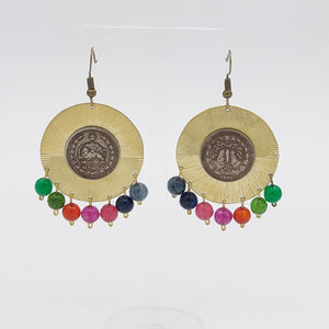 Pahlavi Coin Brass Earring with Color Stone Drops