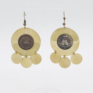 Pahlavi Coin Brass Earring with Brass Drops