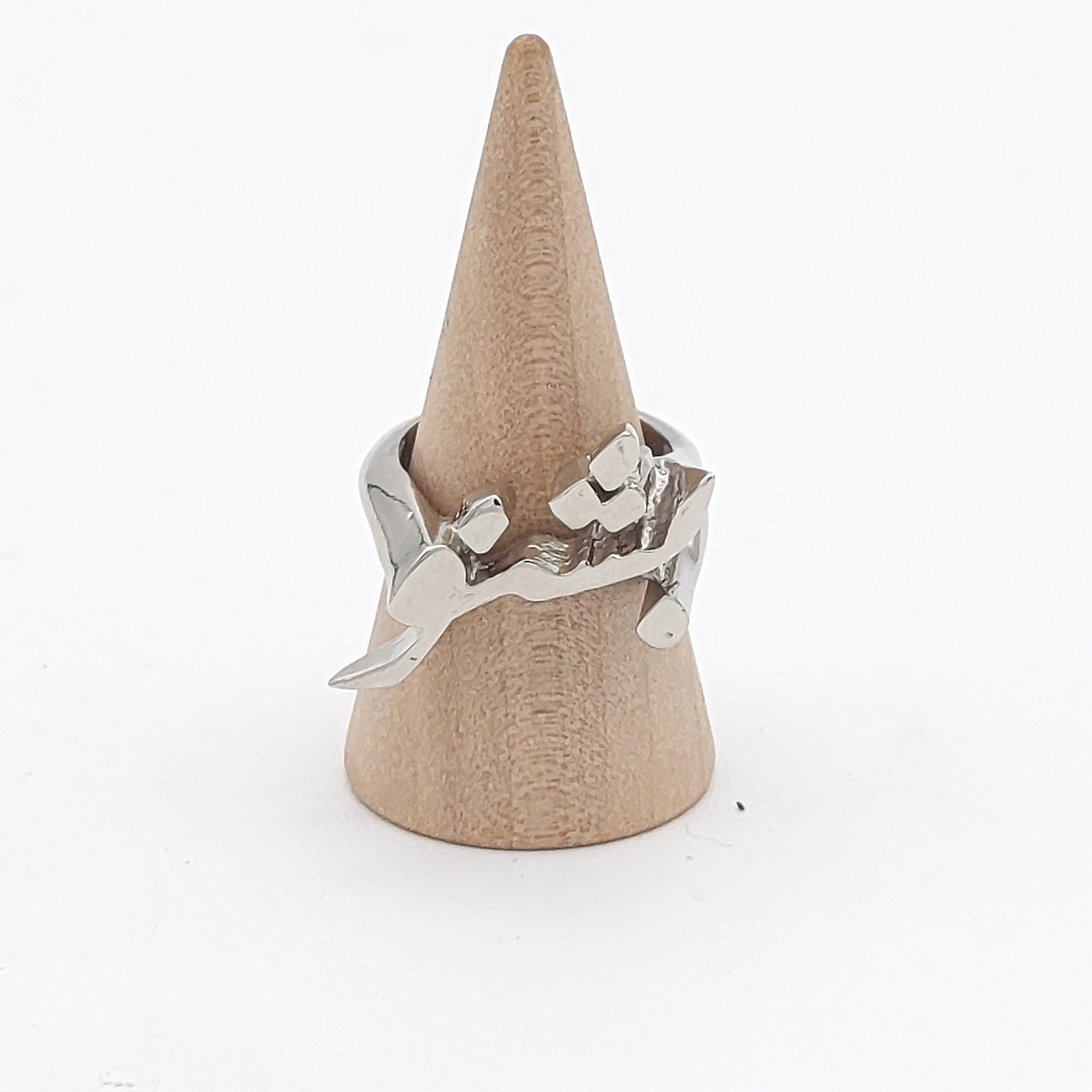 Crafted from recycled brass, this Beshno Calligraphy Ring measures approximately 3/4 inches in length, with width varying according to your ring size. Designed as an adjustable, free-size piece, it is meticulously handmade with a focus on quality and detail. To preserve its finish, avoid exposure to water, harsh chemicals like perfumes and lotions, and store it in a sealed plastic bag when not worn. Clean gently without abrasive materials to maintain its elegance.