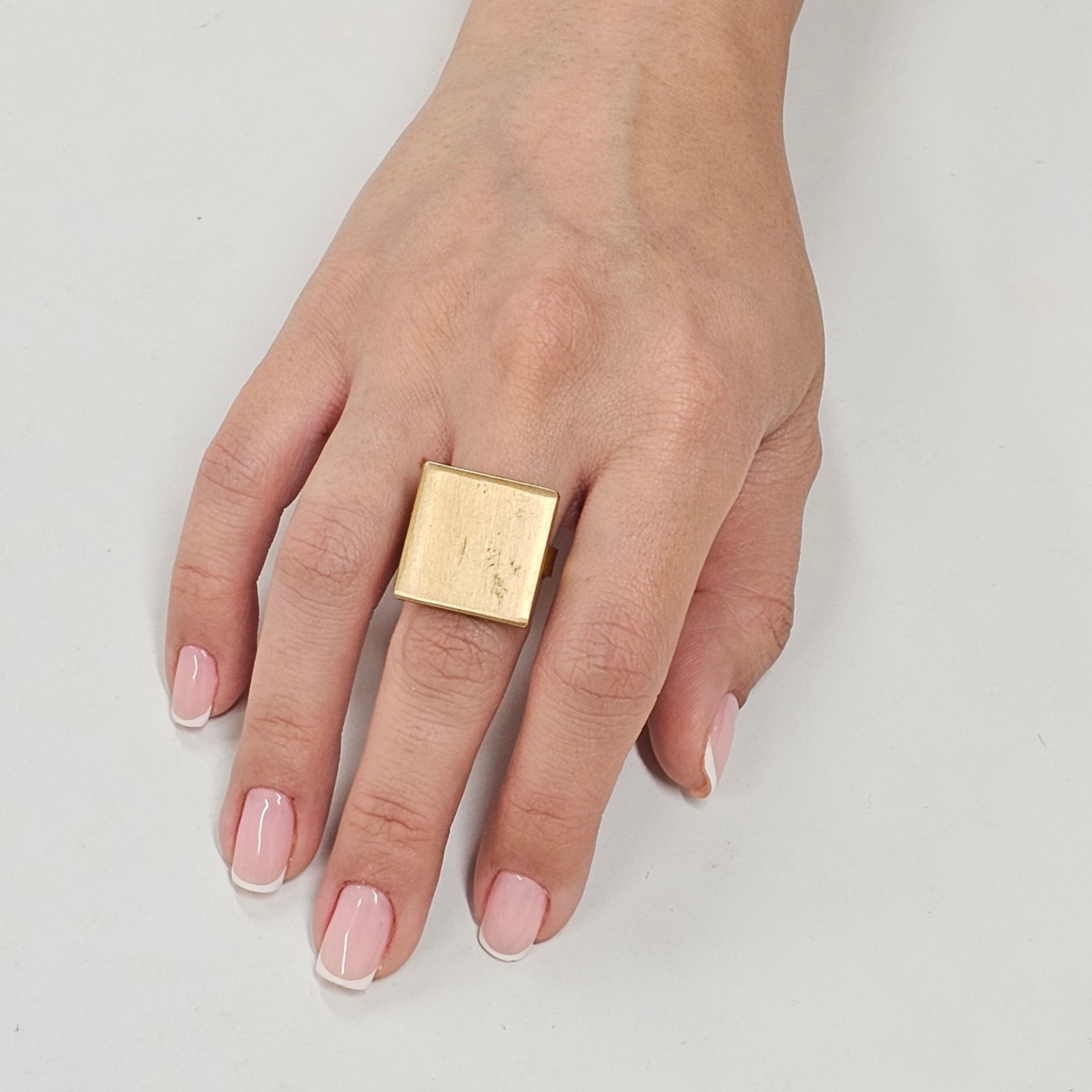 These brass rings come in three distinct geometric designs: circle, square, and rectangle. Each piece is handcrafted with precision from high-quality brass, featuring adjustable sizing for a comfortable fit. The circle measures 3/4 inch in diameter, the square has 3/4 inch sides, and the rectangle measures 1 by 3/8 inches. To maintain their finish, avoid exposure to water and harsh chemicals, store them in a sealed bag when not worn, and clean gently without abrasives.