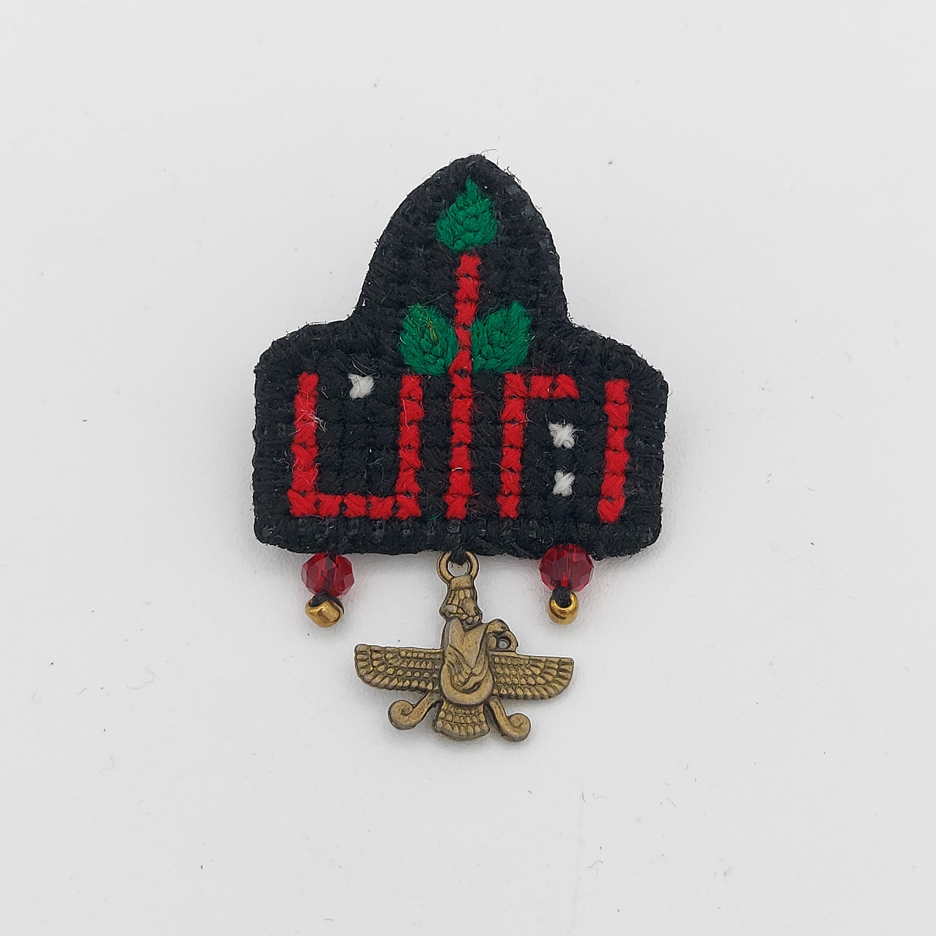 Celebrate heritage with our handcrafted Iran Brooch, a unique piece inspired by traditional Ashayer jewelry. This woven brooch elegantly displays the word "Iran," paying homage to Persian culture and craftsmanship. Each piece is carefully crafted with intricate details, blending modern elegance with the timeless artistry of Ashayer designs.