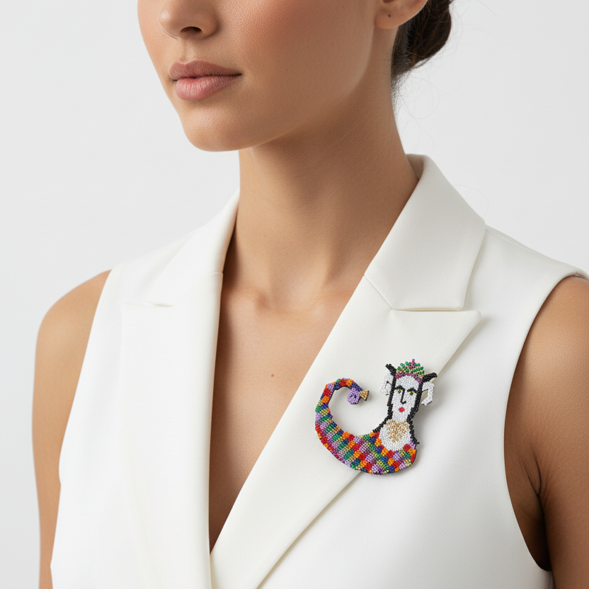 The Shahmaran Bead Brooch embodies contemporary craftsmanship rooted in Persian artistic heritage. This meticulously beaded piece draws inspiration from traditional motifs, reimagined through modern design sensibilities. Every bead is deliberately placed to create intricate patterns and dimensional depth. It presents a wearable narrative that honors cultural artistry while making a distinctly sophisticated statement.