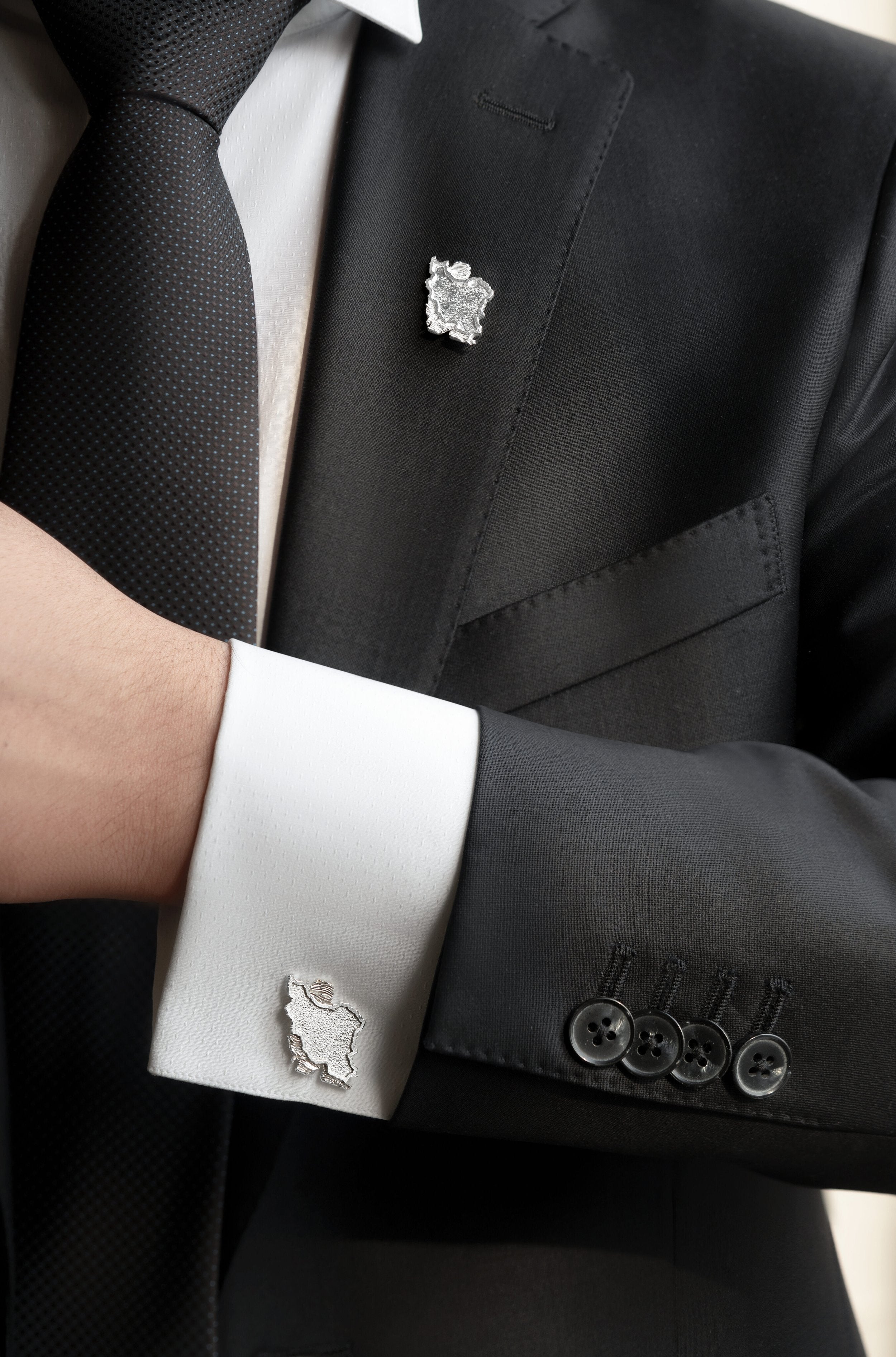 Crafted from 925 sterling silver, this minimalist Iran map pin brooch measures 0.9 by 0.8 inches (2.2 by 2 cm) and is handmade with meticulous attention to detail. Originating from Canada and shipped domestically, it makes an elegant gift for anniversaries, weddings, or birthdays. For a coordinated look, pair it with matching tie bars and cufflinks in the same refined style.