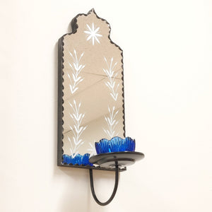 Hand etched Wall Decor Mirror with Vintage Candle Holder