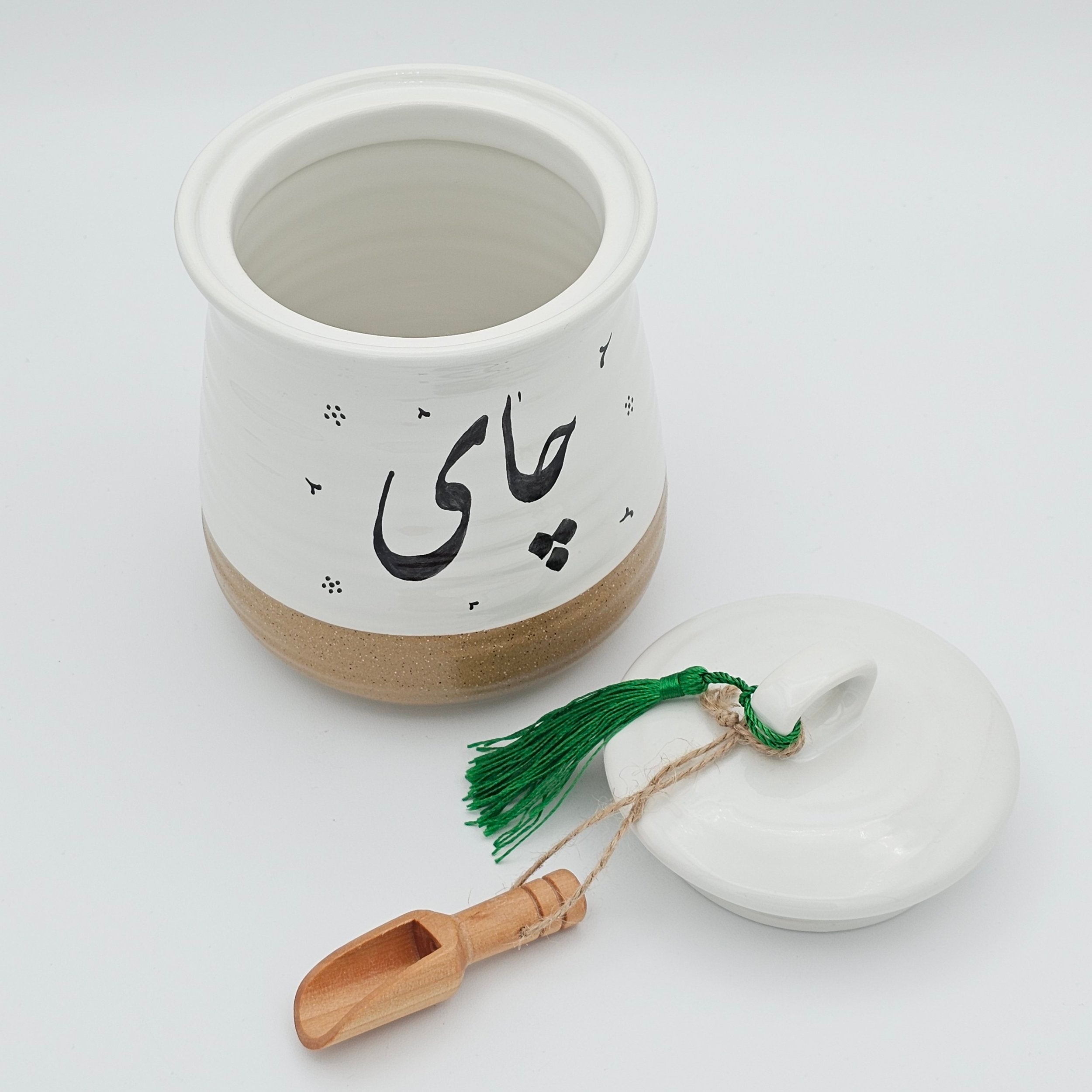 Each canister comes with a small wooden spoon and, of course, a green tassel!