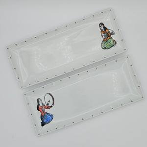 Daf & Tonbak Qajar Lady Rectangular Dish with Dots