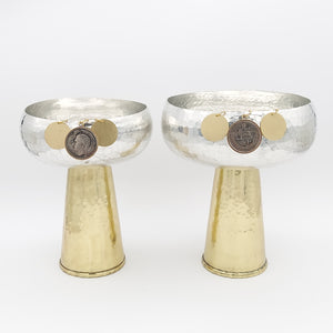 Copper Bowl with Brass Stand & Pahlavi Coin