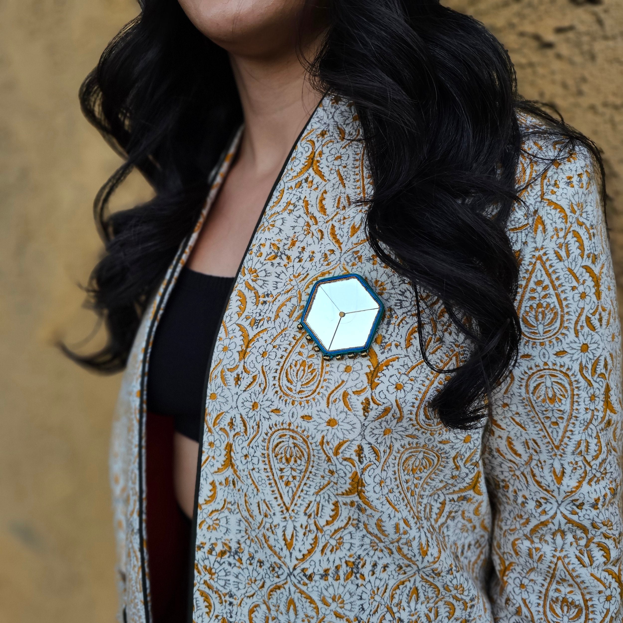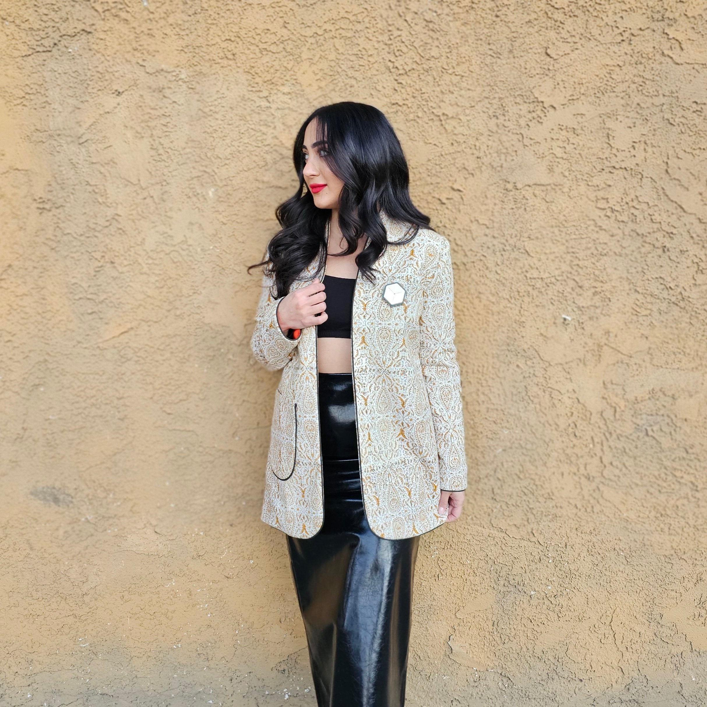 Hand crafted Isfahan Qalamkari fabric coat with Amber lining