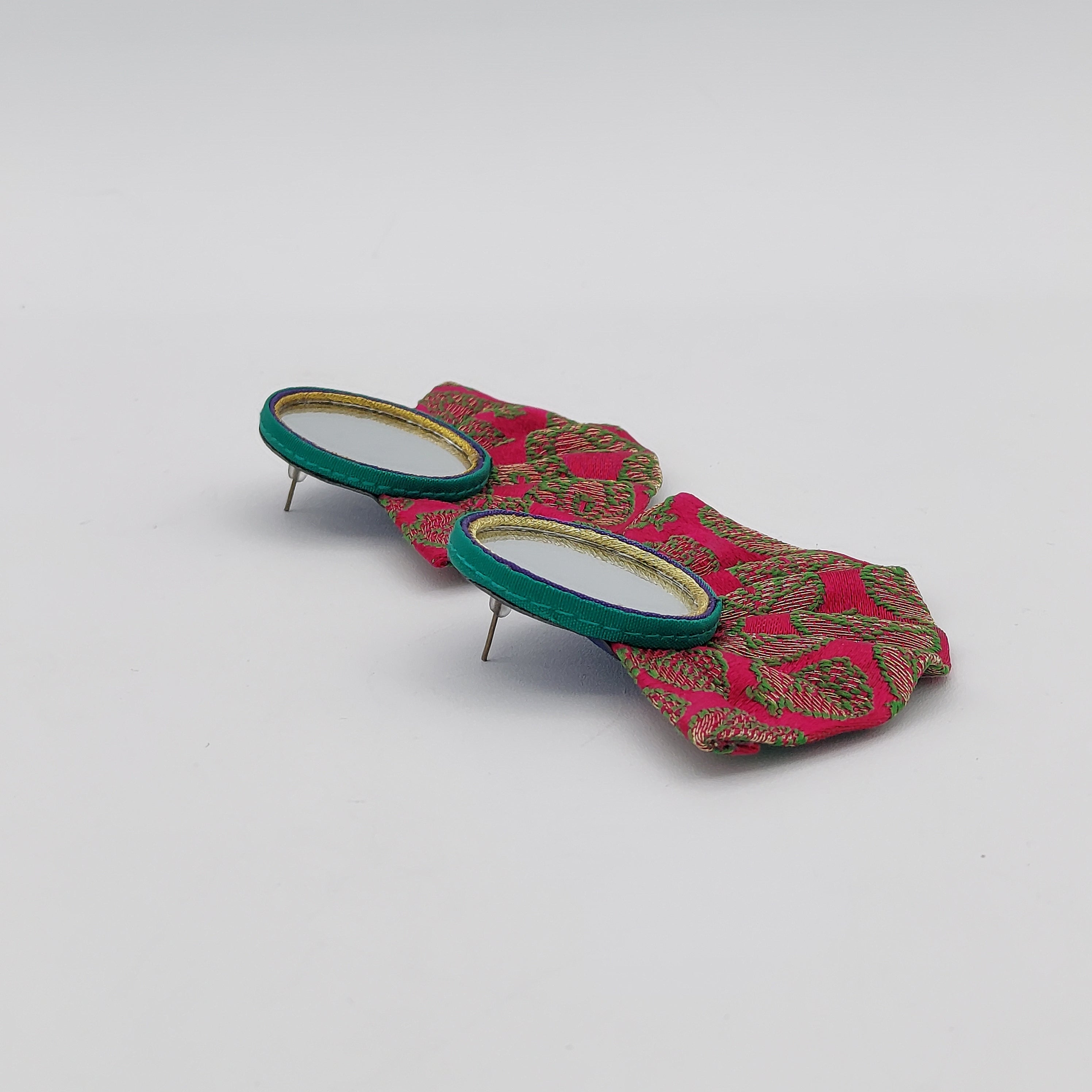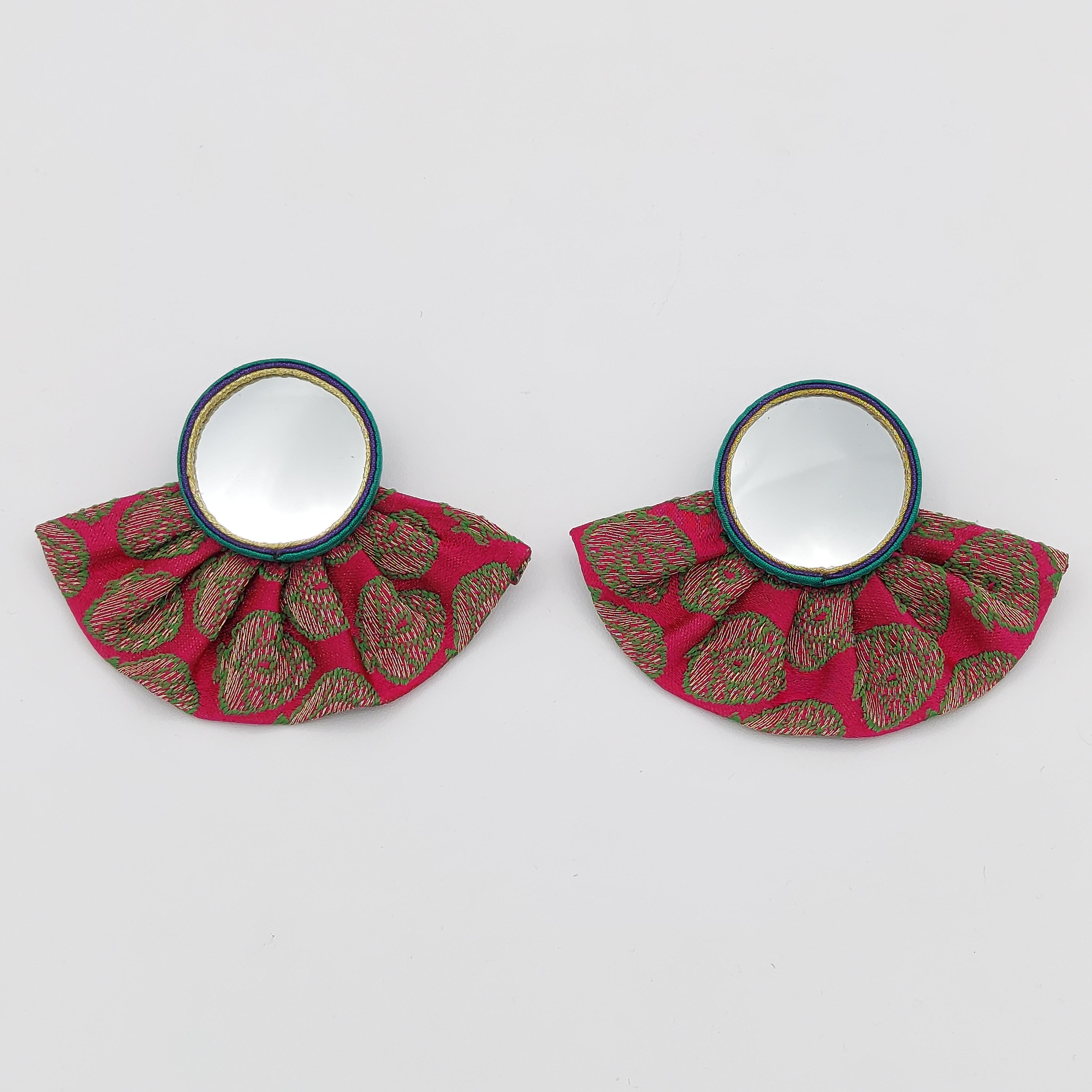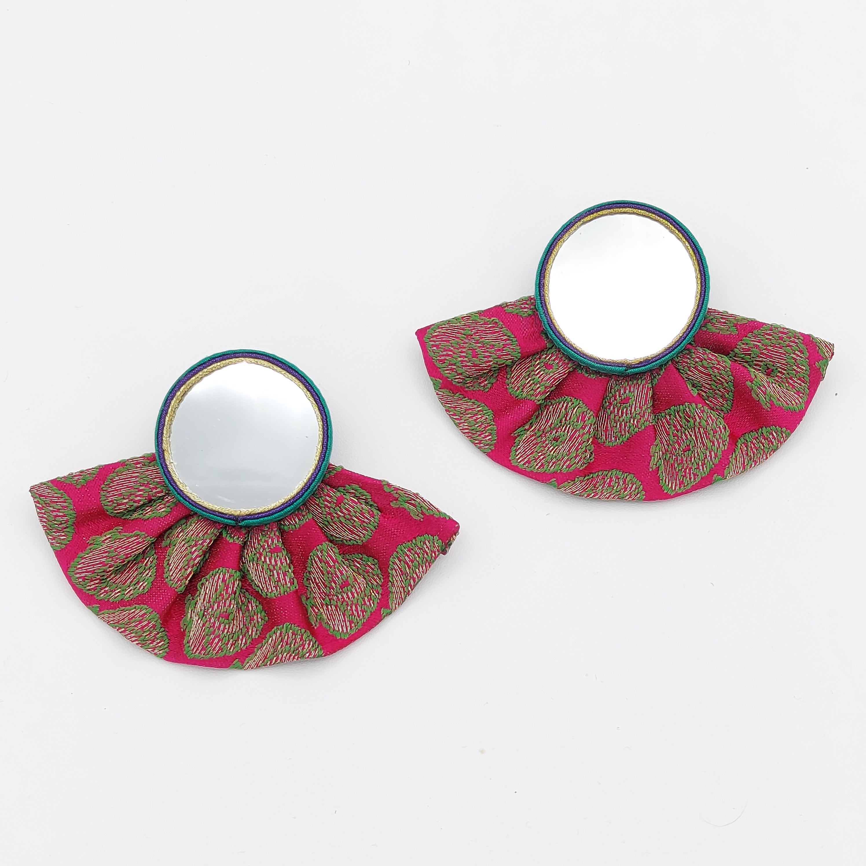 Large Pink Circle Mirror Earrings with Pleated Skirt
