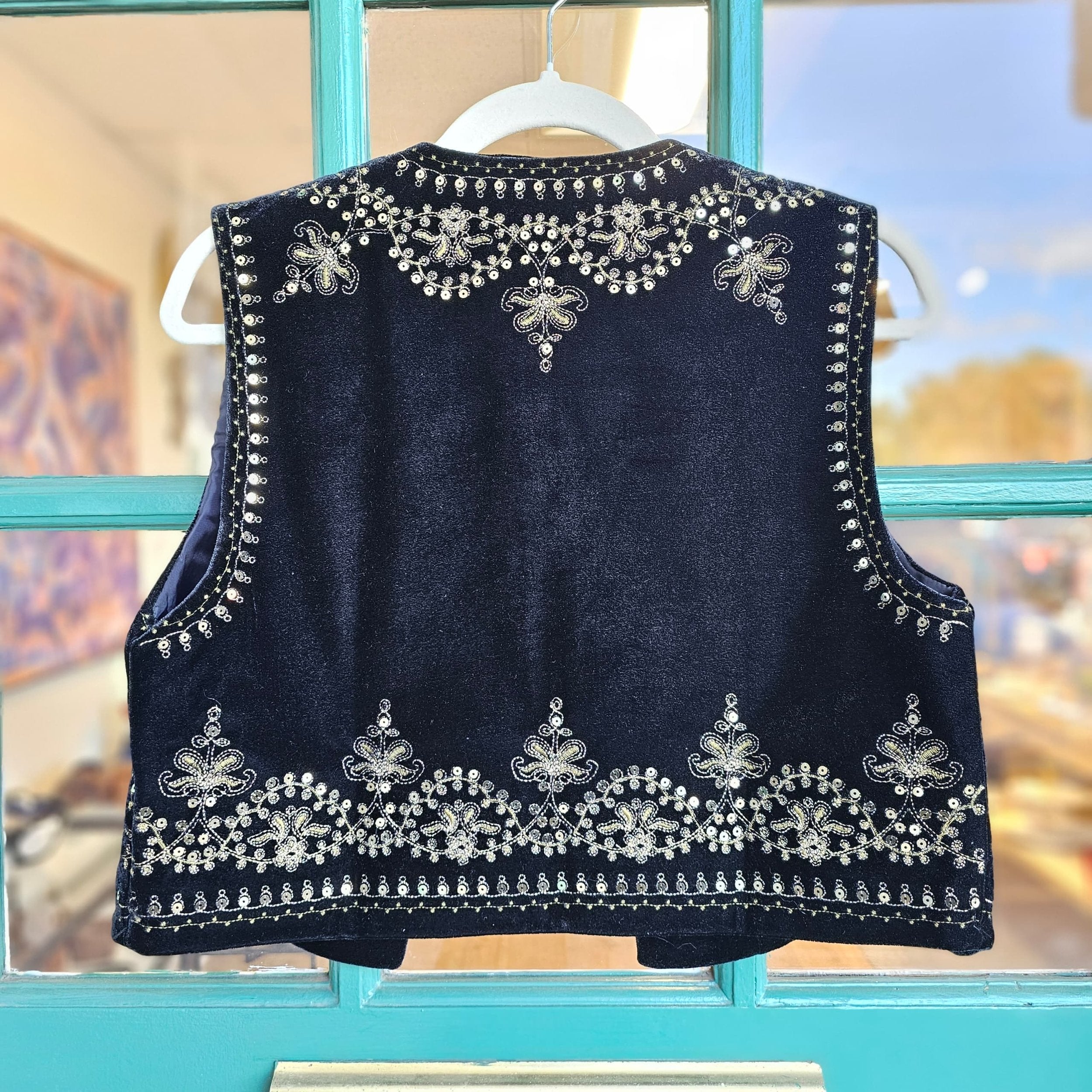 Black Velvet Vest with Embroidery