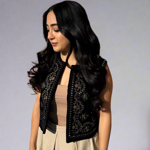 Black Vest with Gold Thread Embroidery