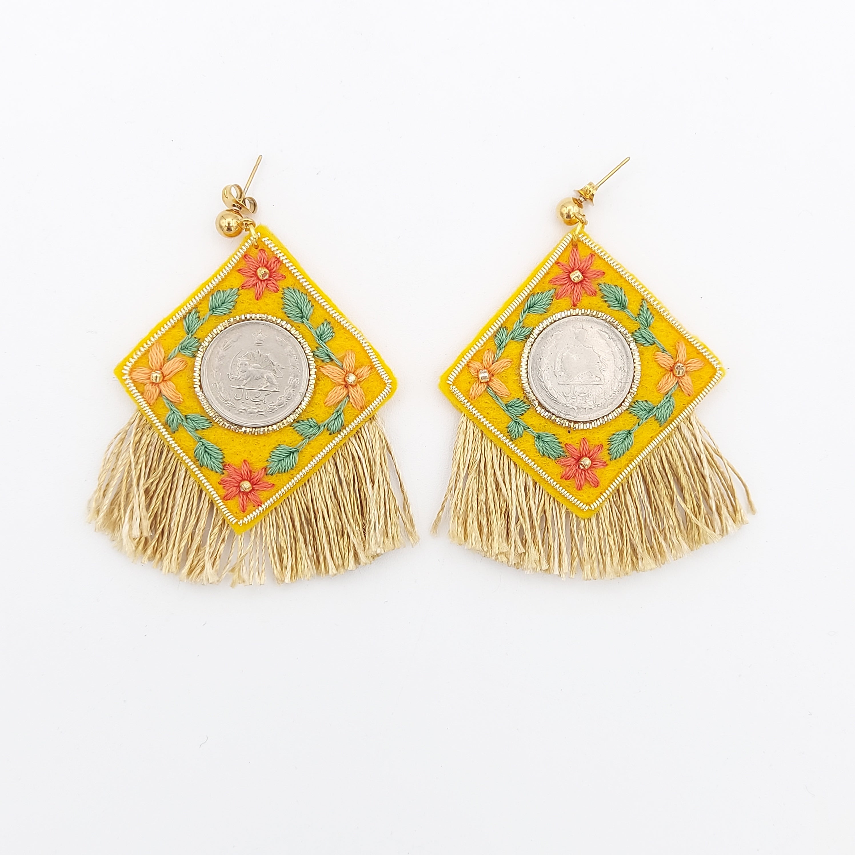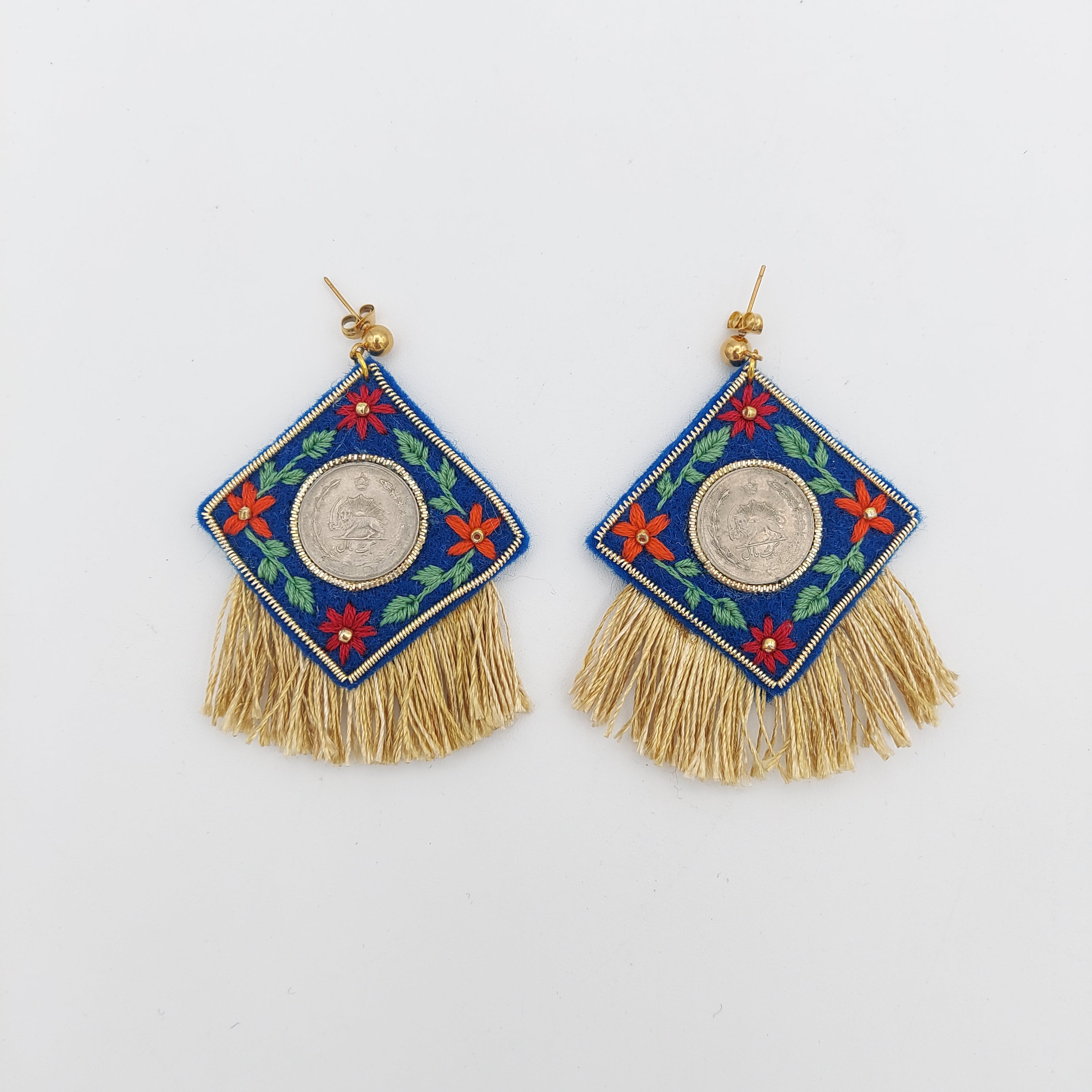 Hand embroidery earring with Pahlvi coin (yek riali)