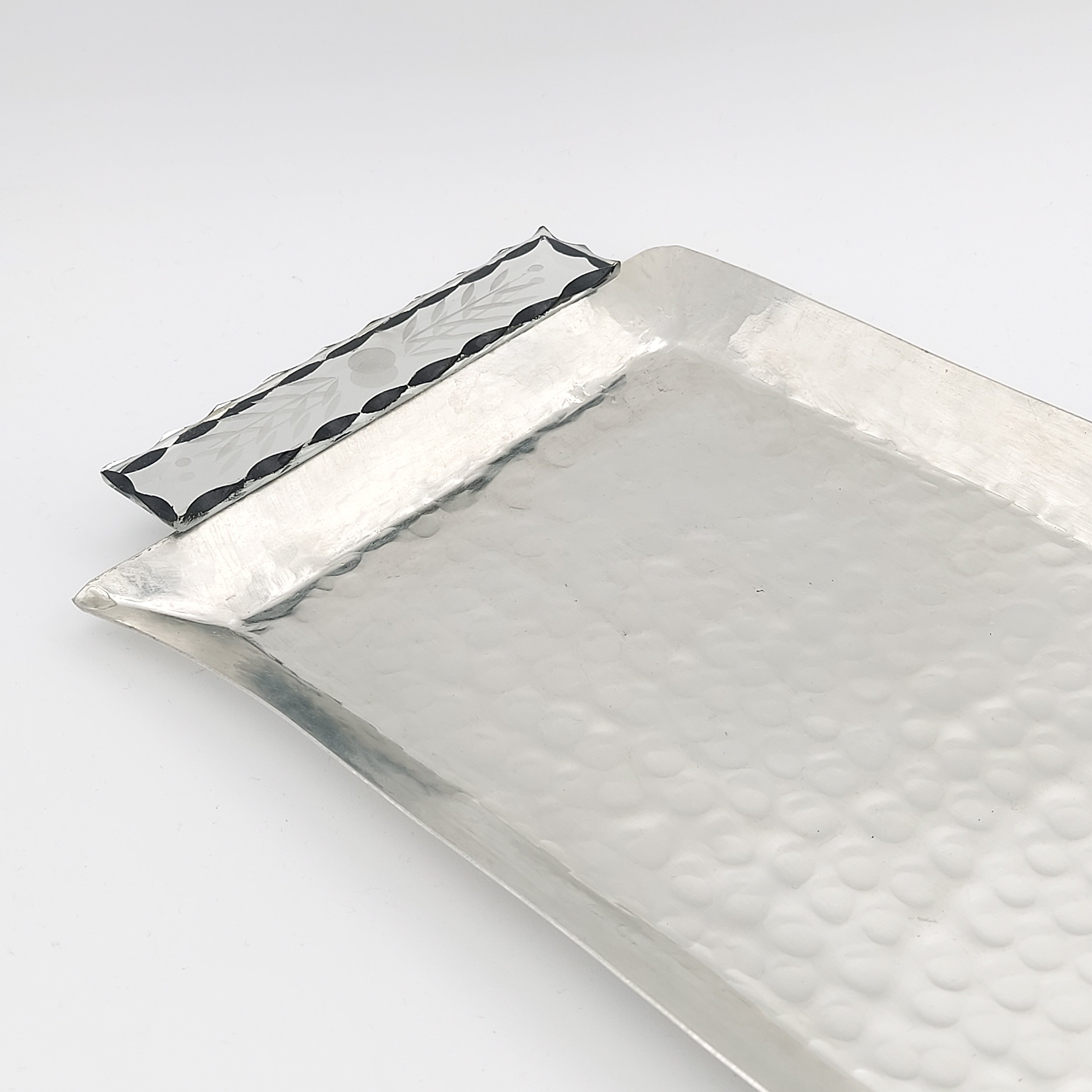 Handcrafted Large Copper Serving Tray with Etched Mirror