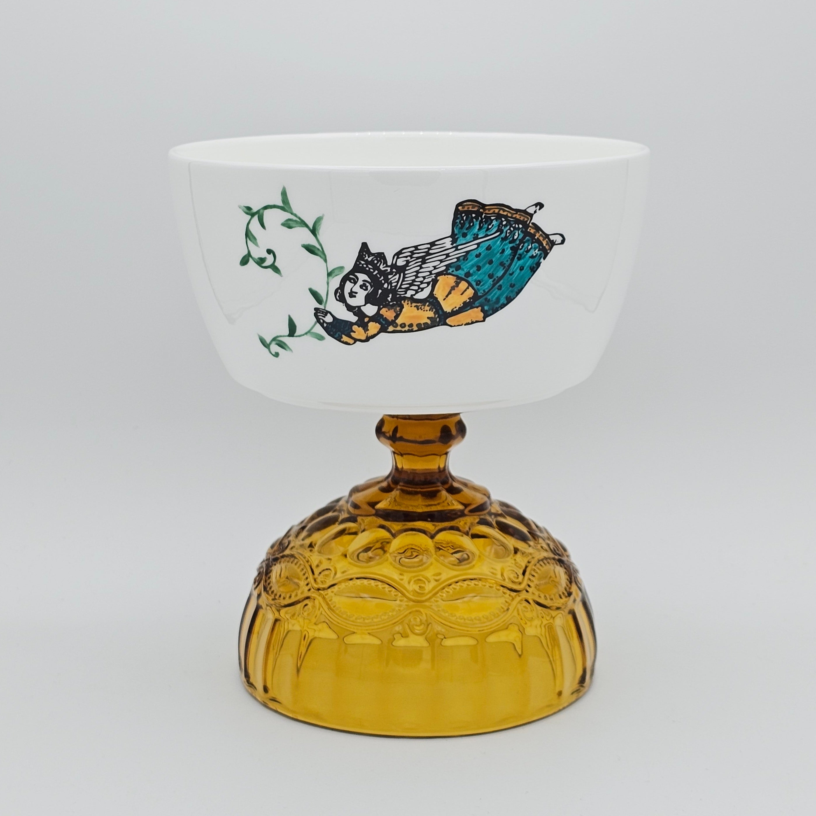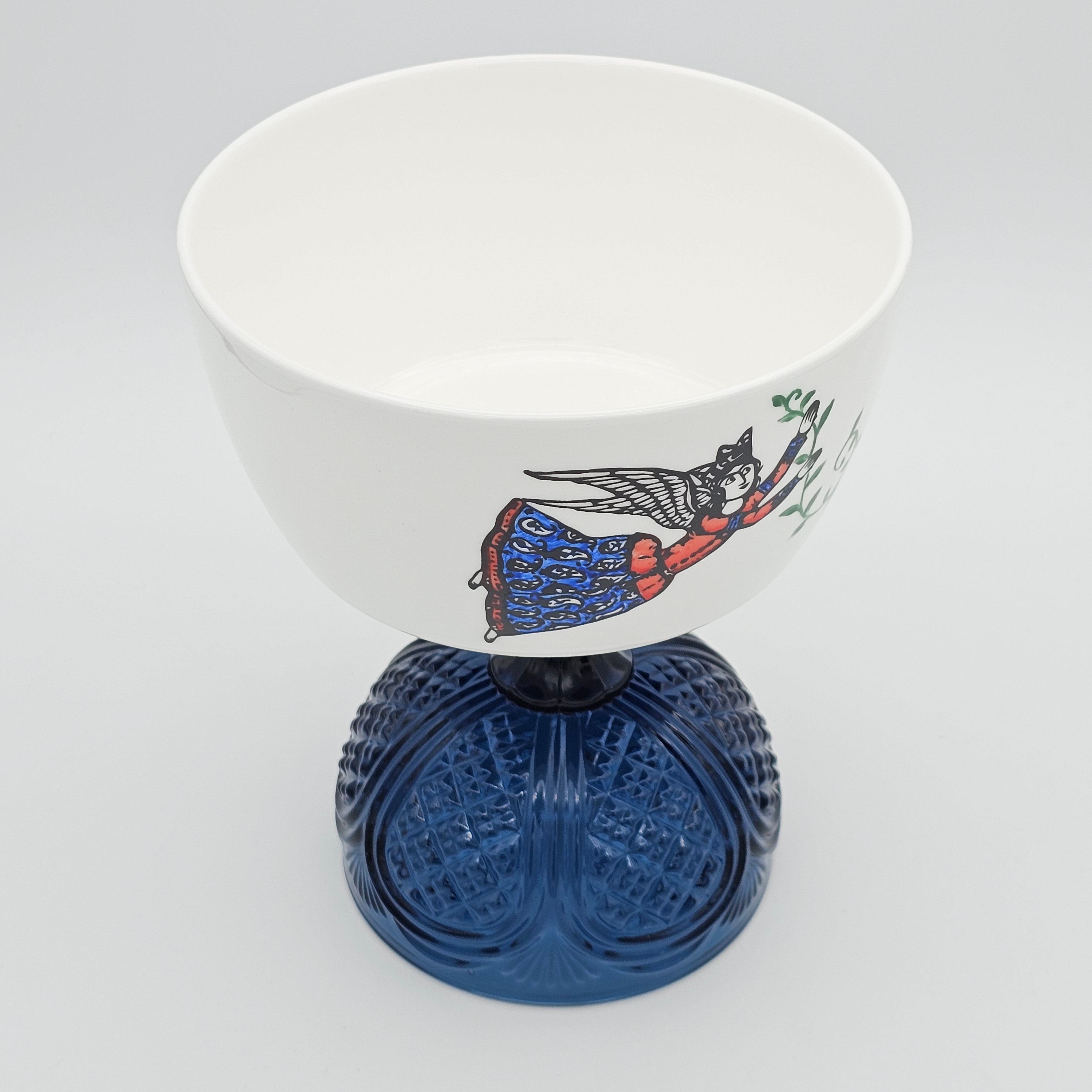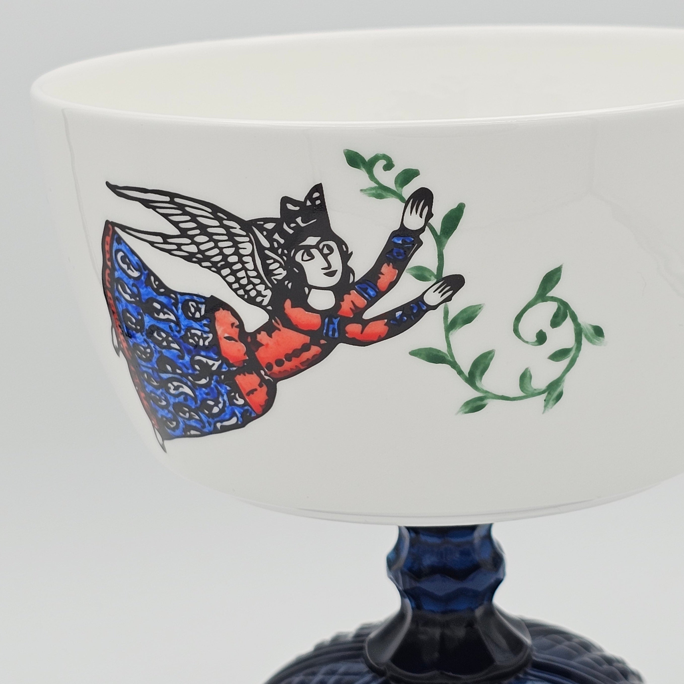 Hand Painted Persian Angel Deep Bowl with Glass Stand