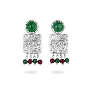 Silver Square Stud Earrings with green and Red Agate