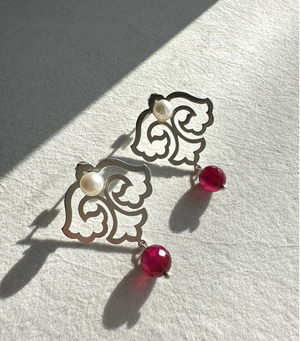 Silver Dangle Pomegranate Modern Earrings with Freshwater Pearl