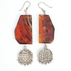 Natural Amber Silver Earrings