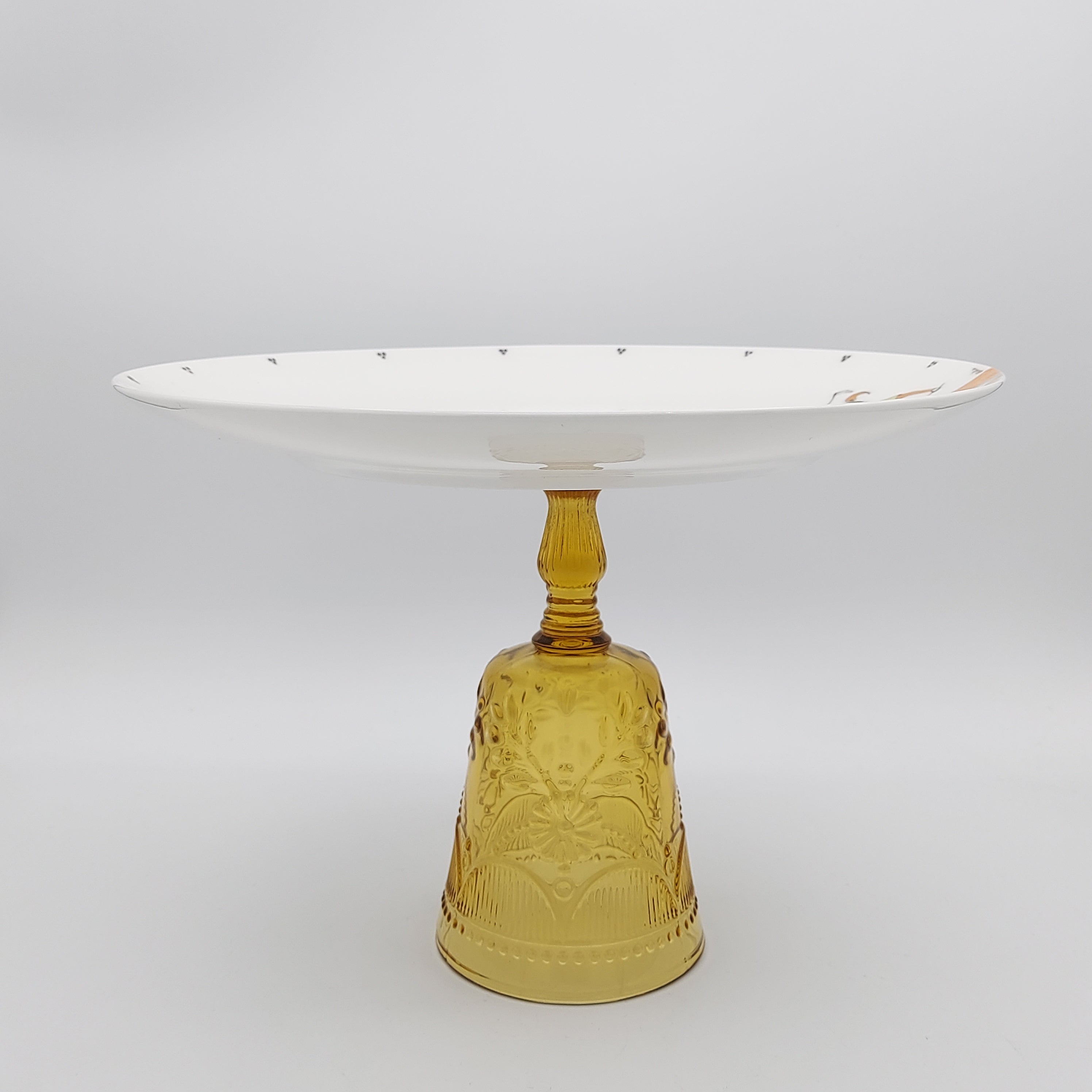 Hand Painted Chogan Serving Plate with Amber Glass Stand