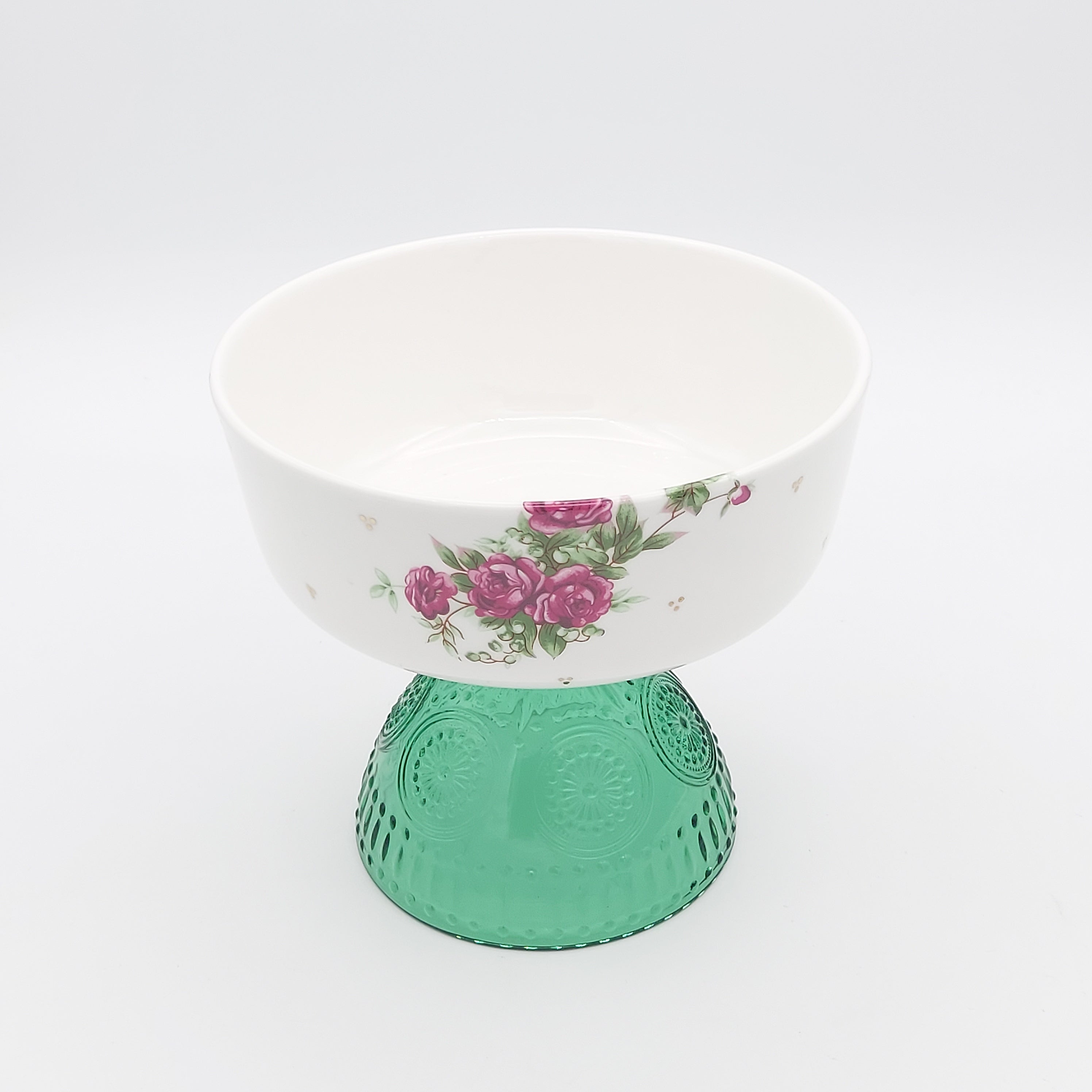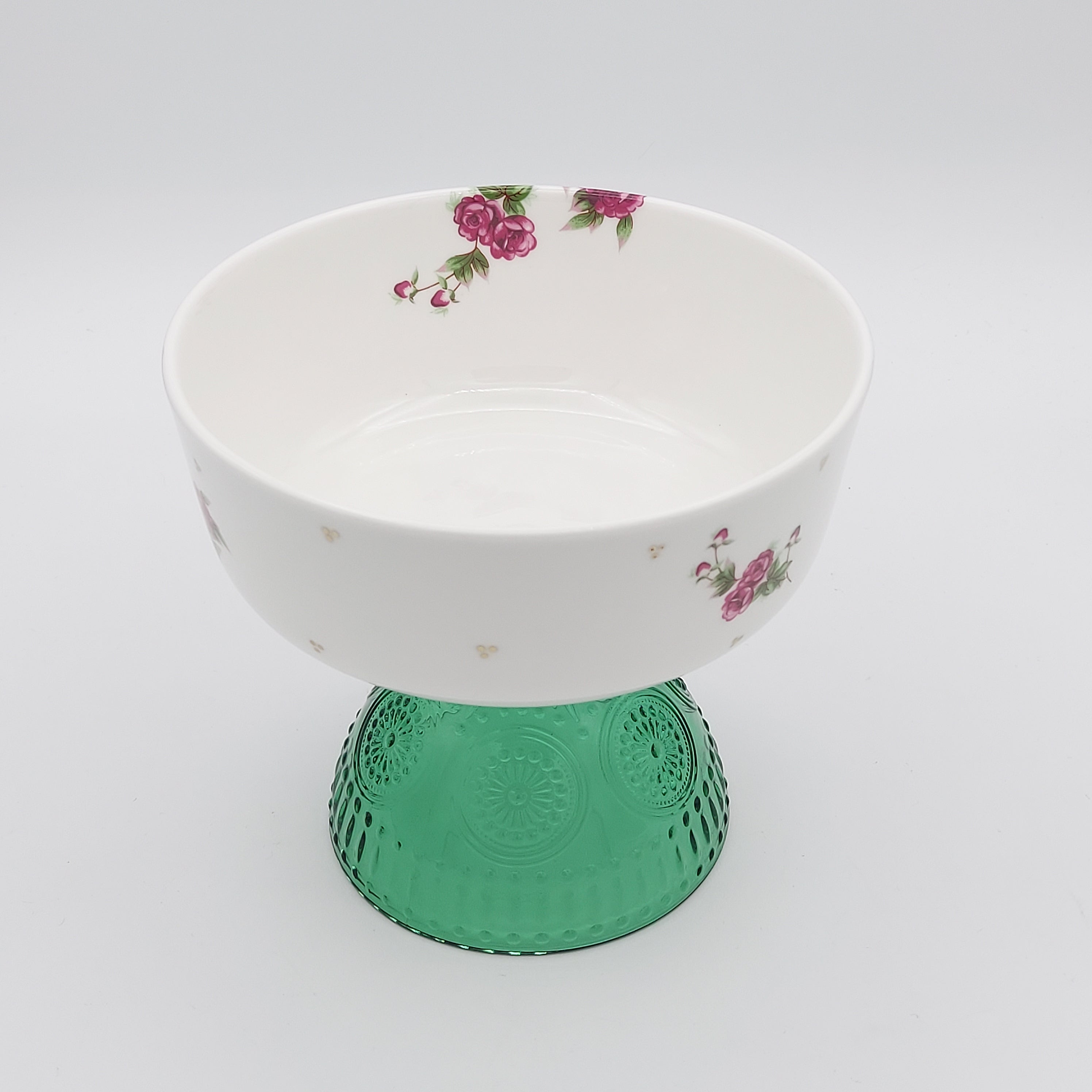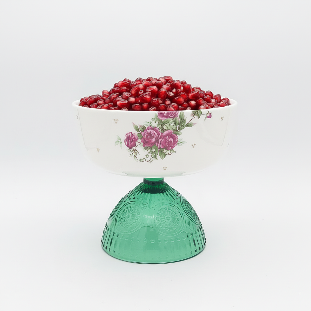 Golesorkhi Bowl with Green Glass Stand and Gold Touches