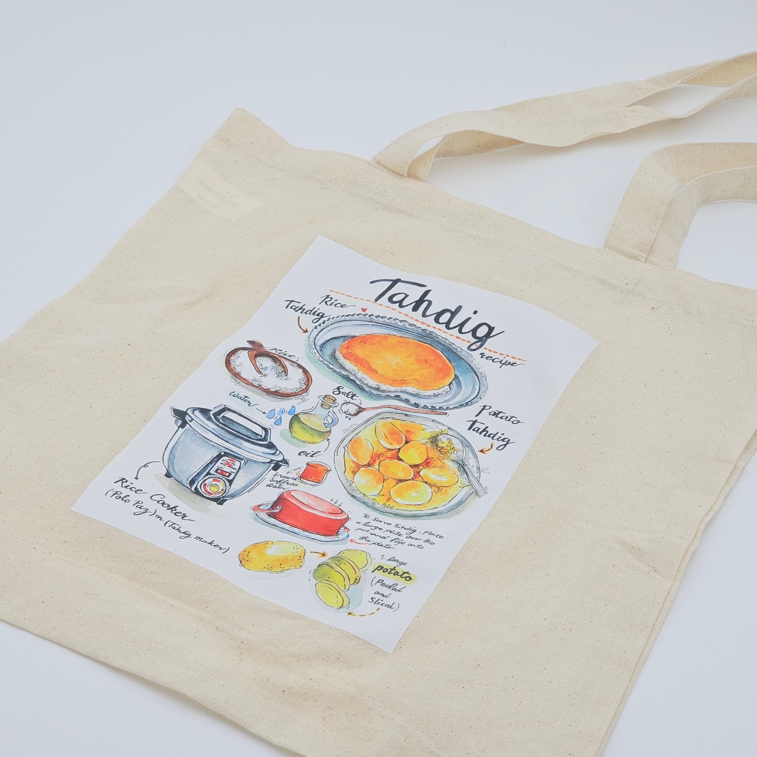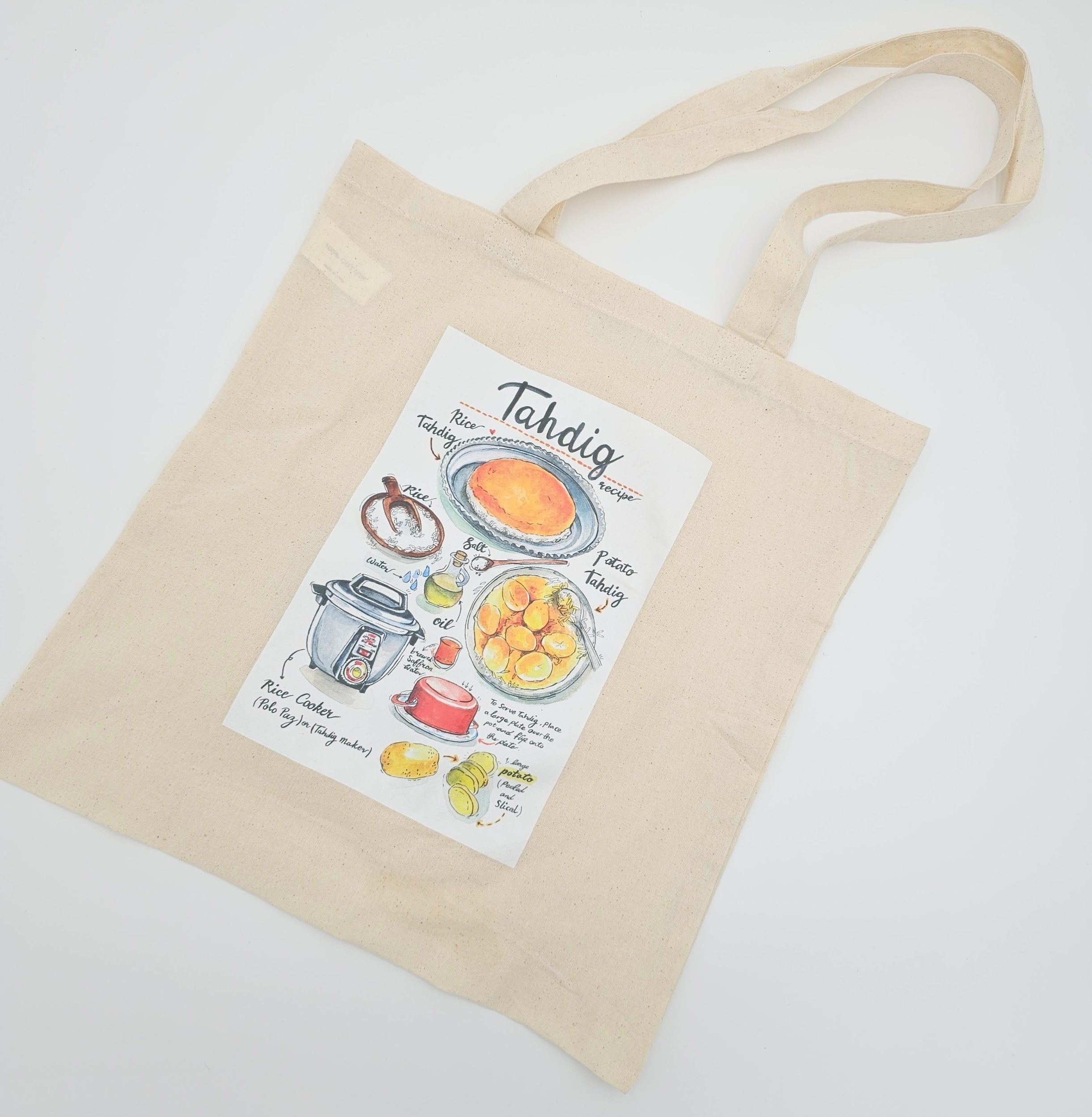 Calling all Persian food lovers! Our Tahdig Tote Bag is a playful tribute to the beloved crispy rice, Tahdig. This unique design is perfect for anyone who appreciates Persian cuisine and culture. Made from durable, eco-friendly canvas, this tote is ideal for everyday errands, shopping, or even a casual day out. Show off your love for Persian food in style while staying eco-conscious!