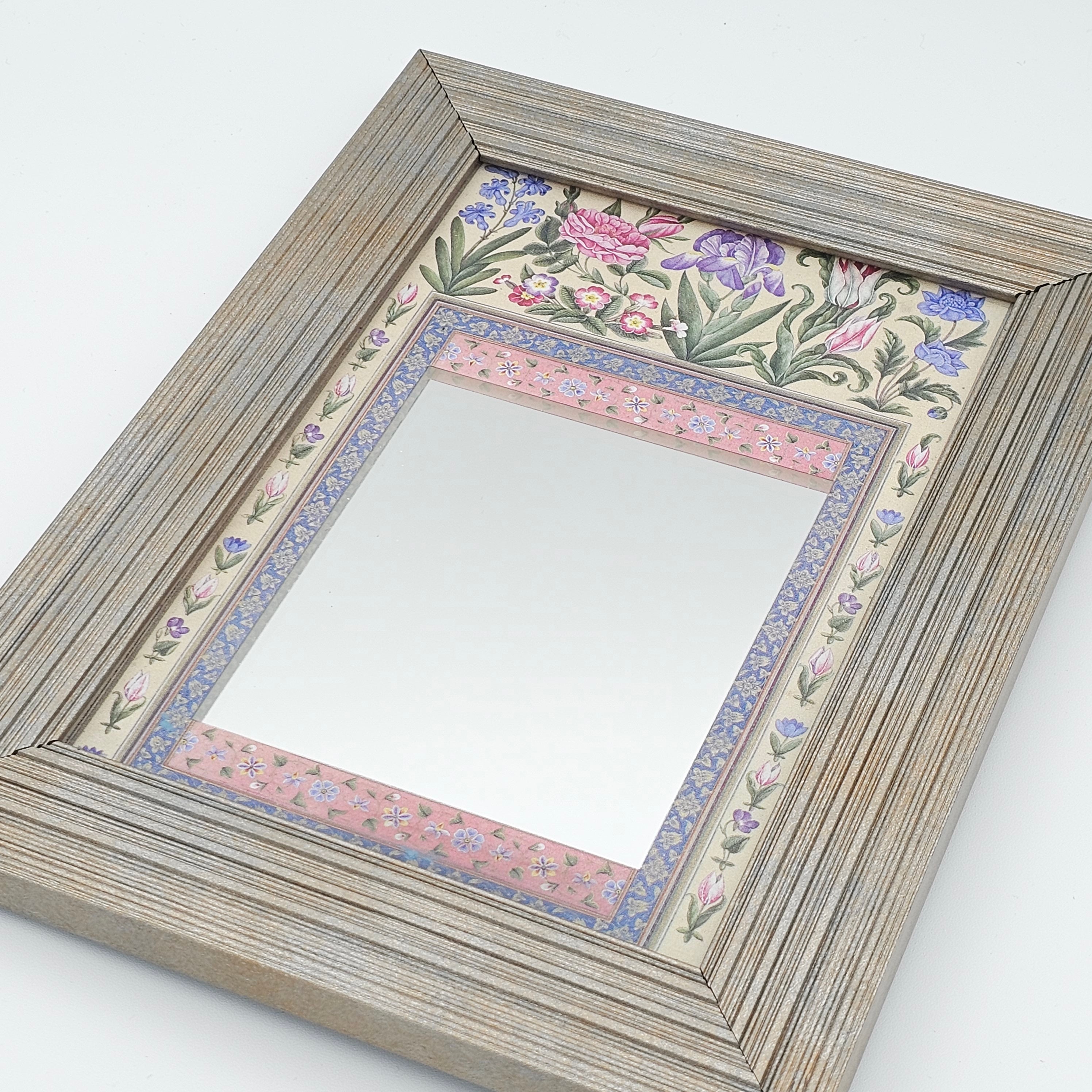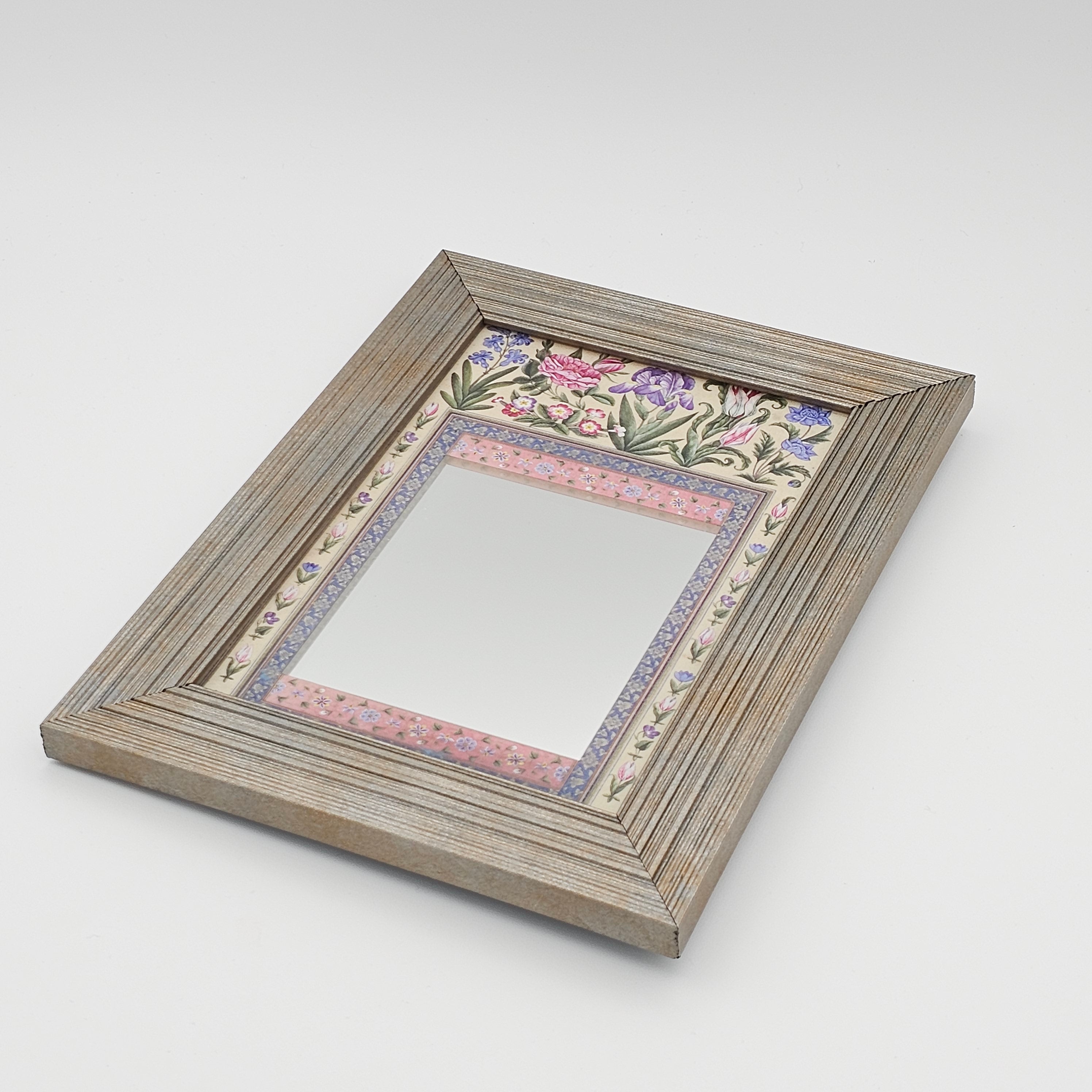 Elegant mirror featuring a wooden frame, designed for versatile placement on tabletops or walls. The refined construction combines functionality with aesthetic appeal, making it an ideal accent piece for any room seeking understated sophistication.