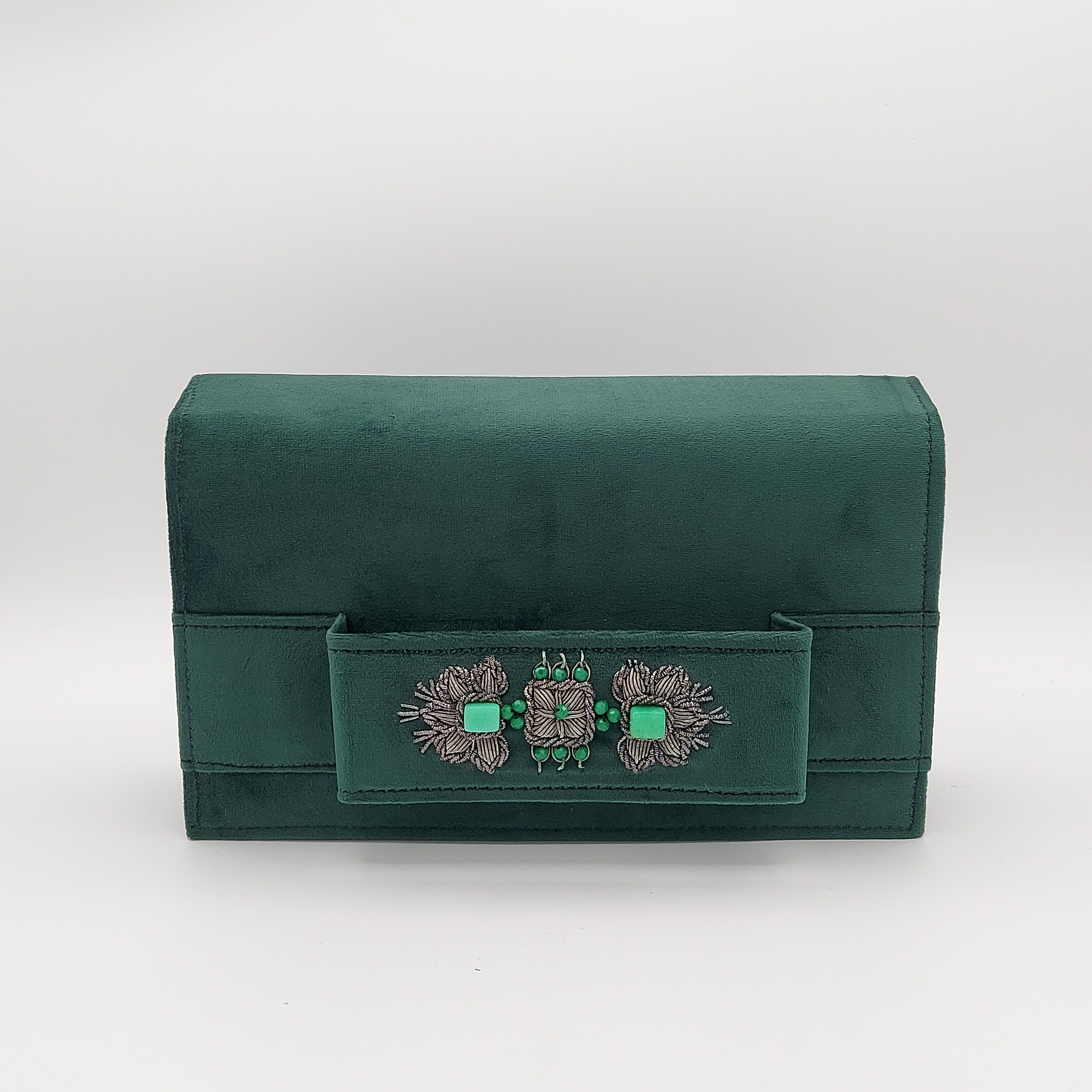 Dark Green Amood Clutch with Green Jade