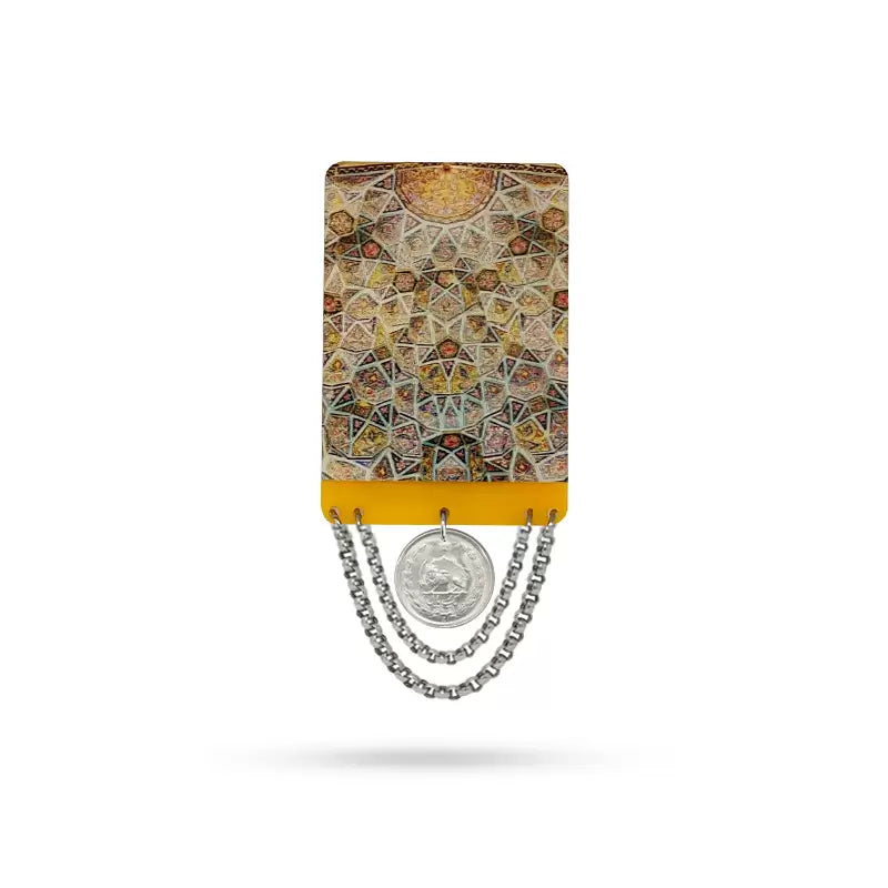 The Niloox Brooch is from the Niloox & Arghavan Collection, which was created in collaboration with Niloox Label. Inspired by the arches of the Nasir al-Mulk Mosque in Shiraz, it was designed and produced for Nowruz 1402.