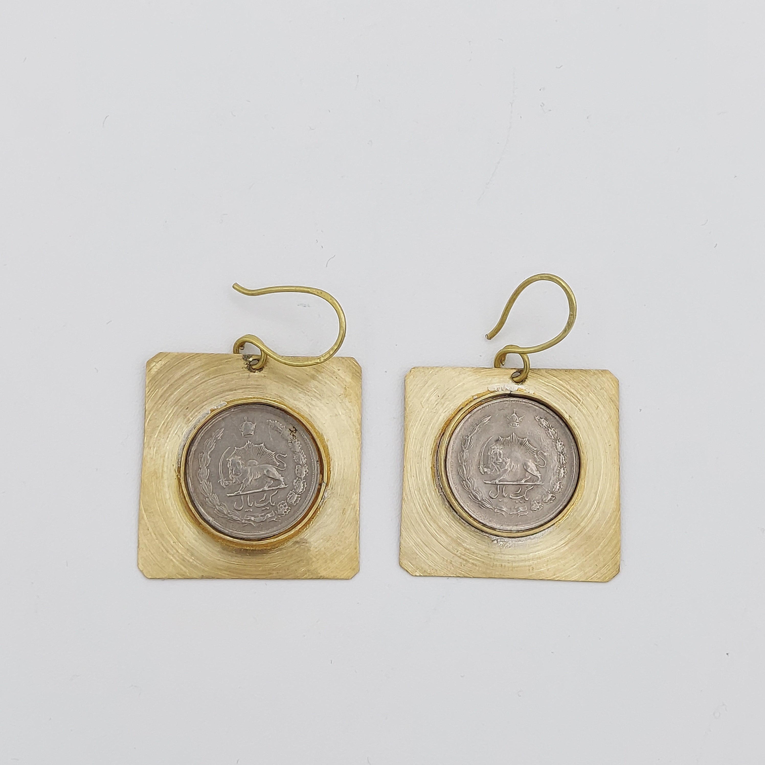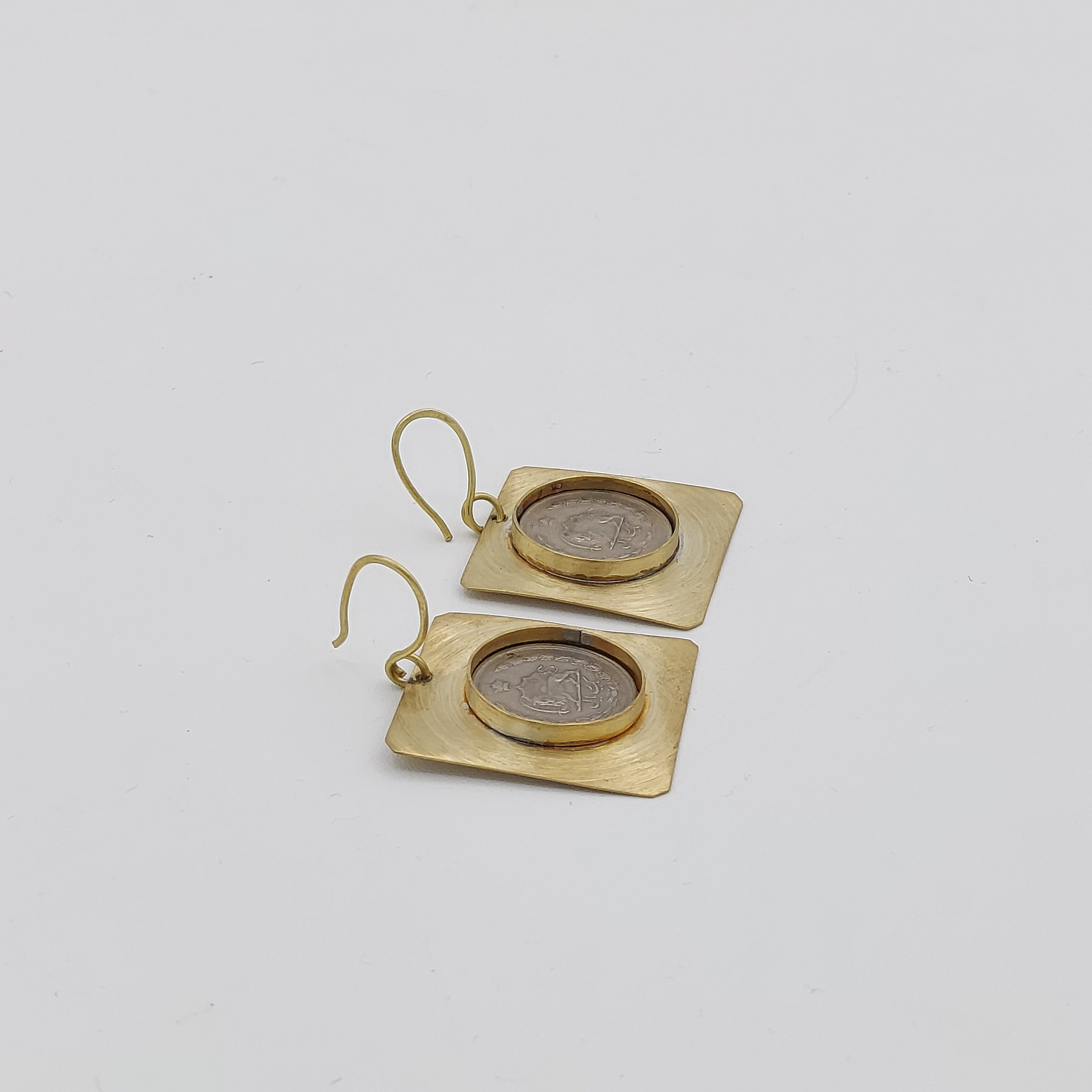 Crafted from brass, these handmade Pahlavi Square Earrings measure 3 x 3 cm, and are designed to comfortably adorn the earlobe with a secure hook closure. Meticulous attention to detail ensures high-quality craftsmanship.