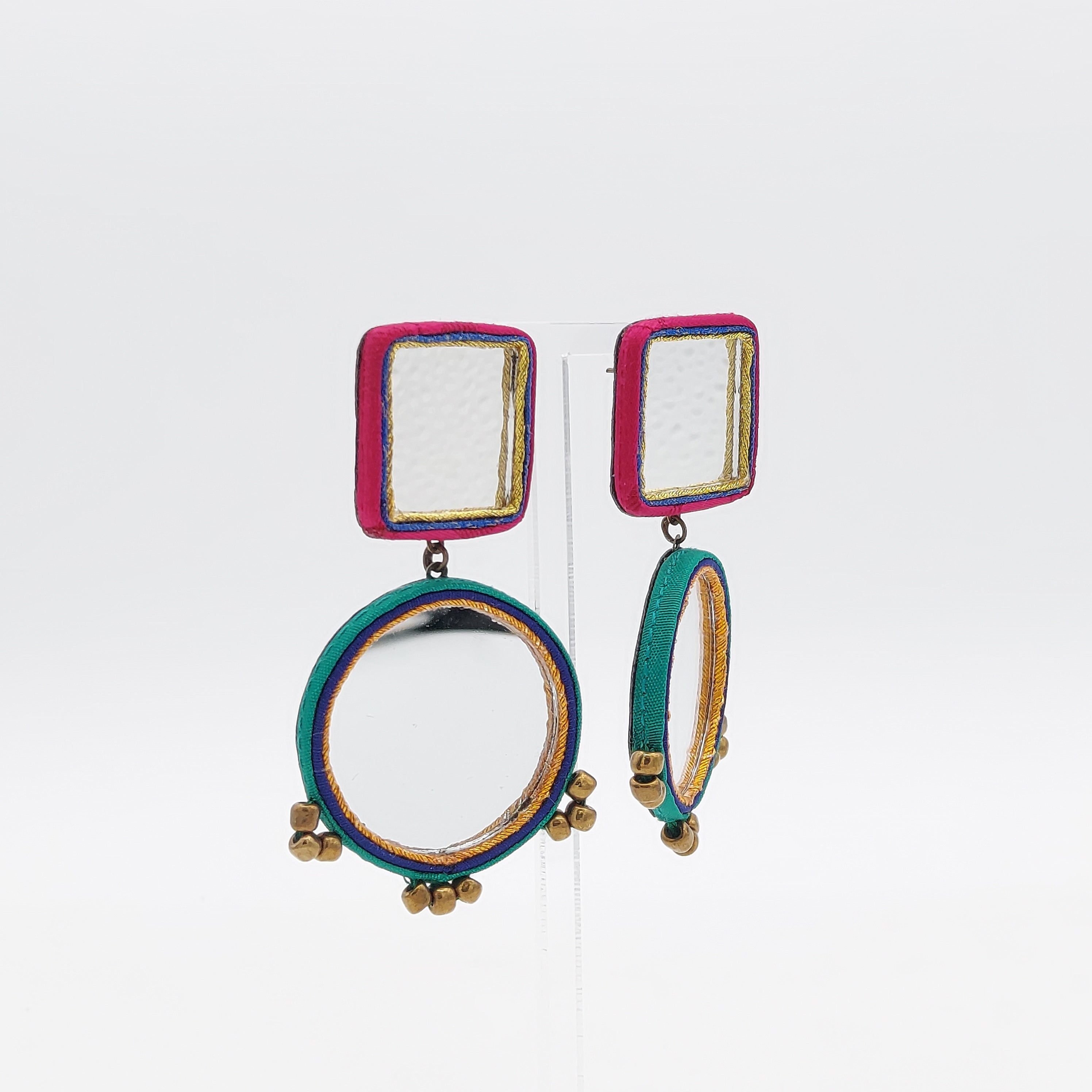 Crafted from brass and mirror, these Square & Circle Earrings are designed to elegantly adorn the earlobe with a secure push-back closure. Each piece is handmade with meticulous attention to quality and detail.