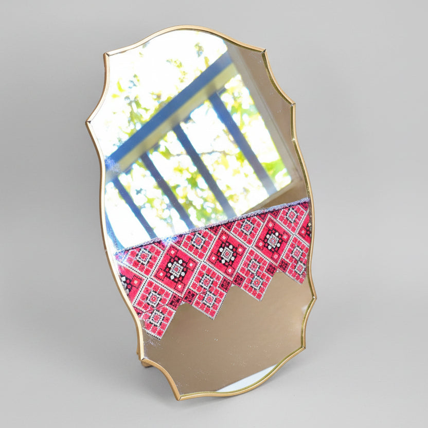 آینه ی رومیزی طرح سوزن دوزی دلبر - بخشی از مجموعه آینه های سوزن دوزی