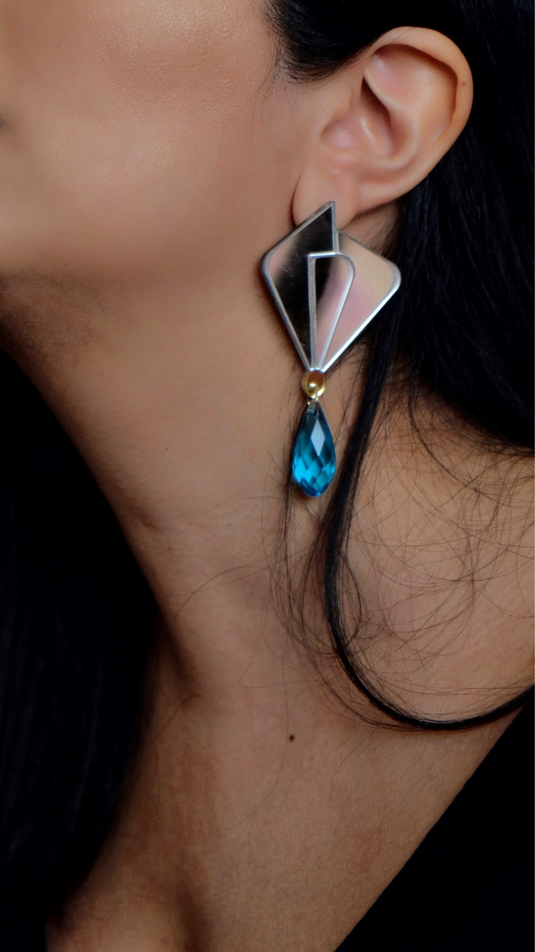 Crafted with precision, these Lily Crystal Blue Earrings feature mirror-effect Plexiglass and crystal components designed for the earlobe, secured with a push-back closure. Measuring 3 inches in length and 1.5 inches in width, each pair is handmade with premium materials ensuring exceptional quality. To maintain their brilliance, avoid exposure to water, harsh chemicals, and abrasive cleaners. Store them in a sealed plastic bag when not worn to prevent air contact and preserve their pristine condition.