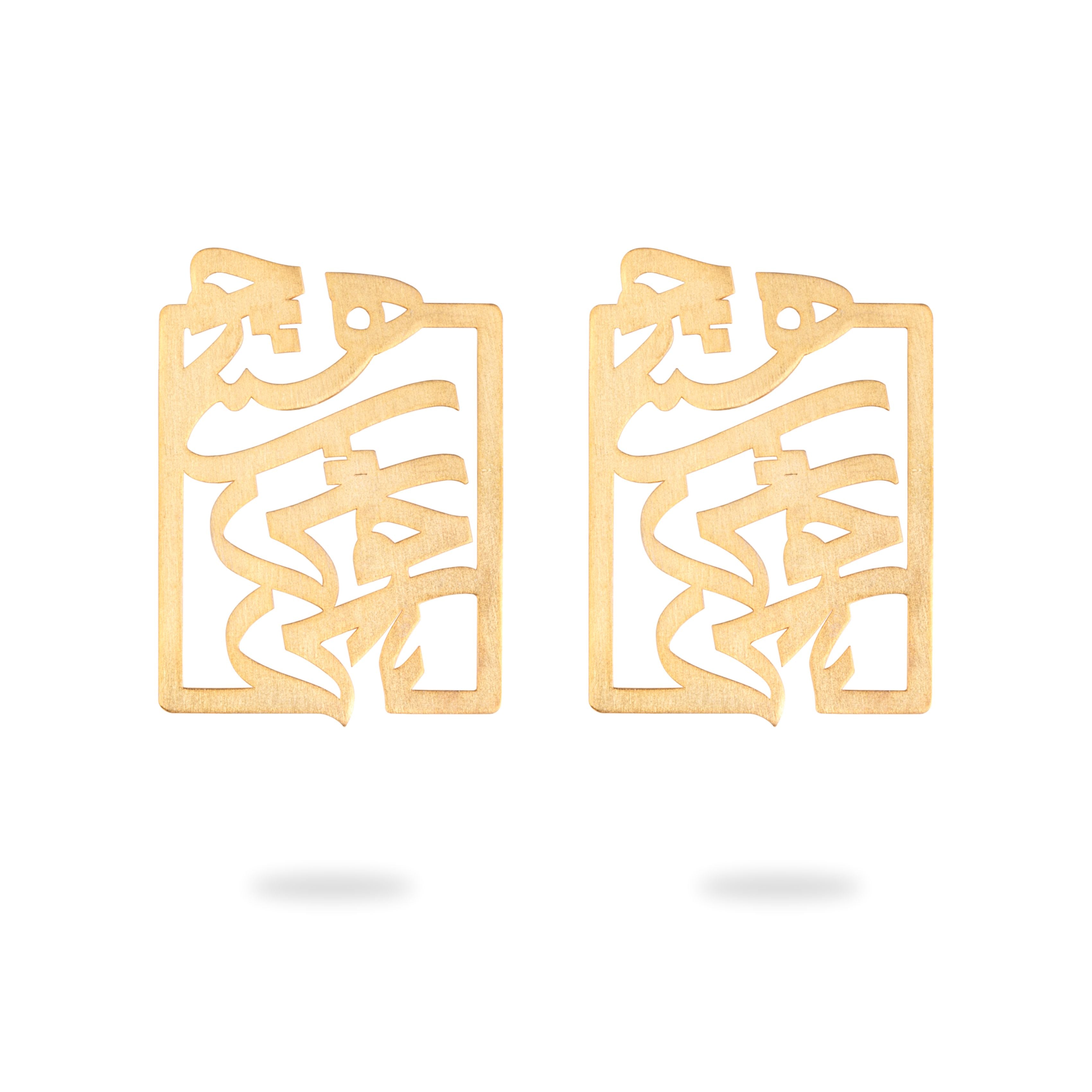Gold Plated Persian Calligraphy Stud Earrings