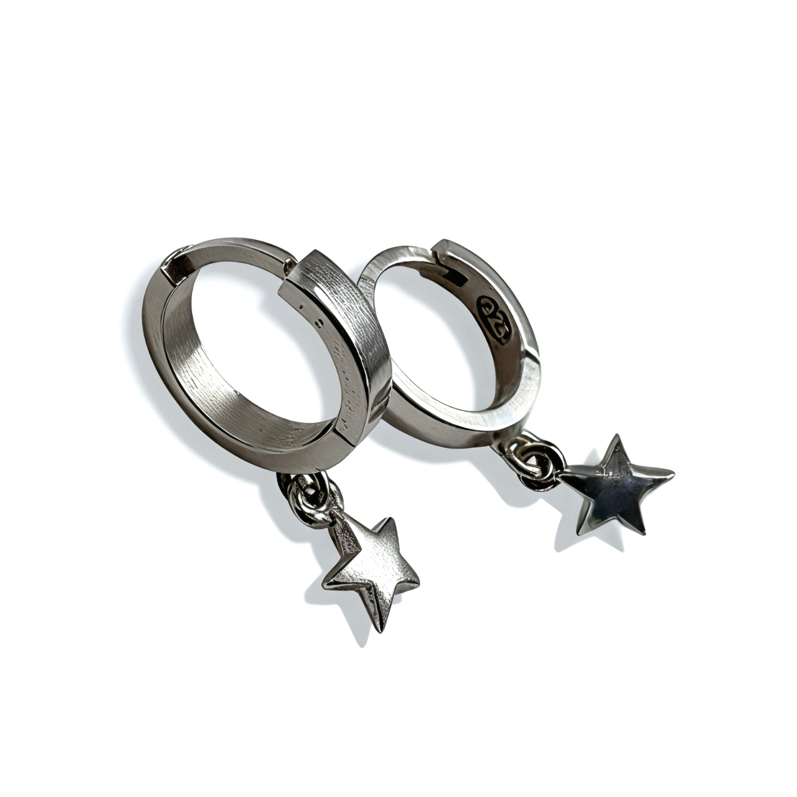 These Star earrings are crafted from 925 sterling silver, designed to comfortably hug the earlobe with a secure huggie closure. Measuring 1 inch in drop length, each piece is handmade with meticulous attention to quality and detail.