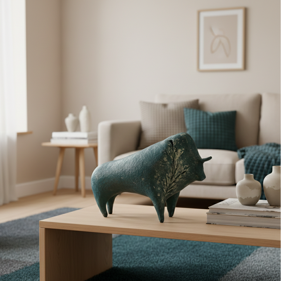 The Silent Forest Bull Papier-Mâché Statue Sculpture