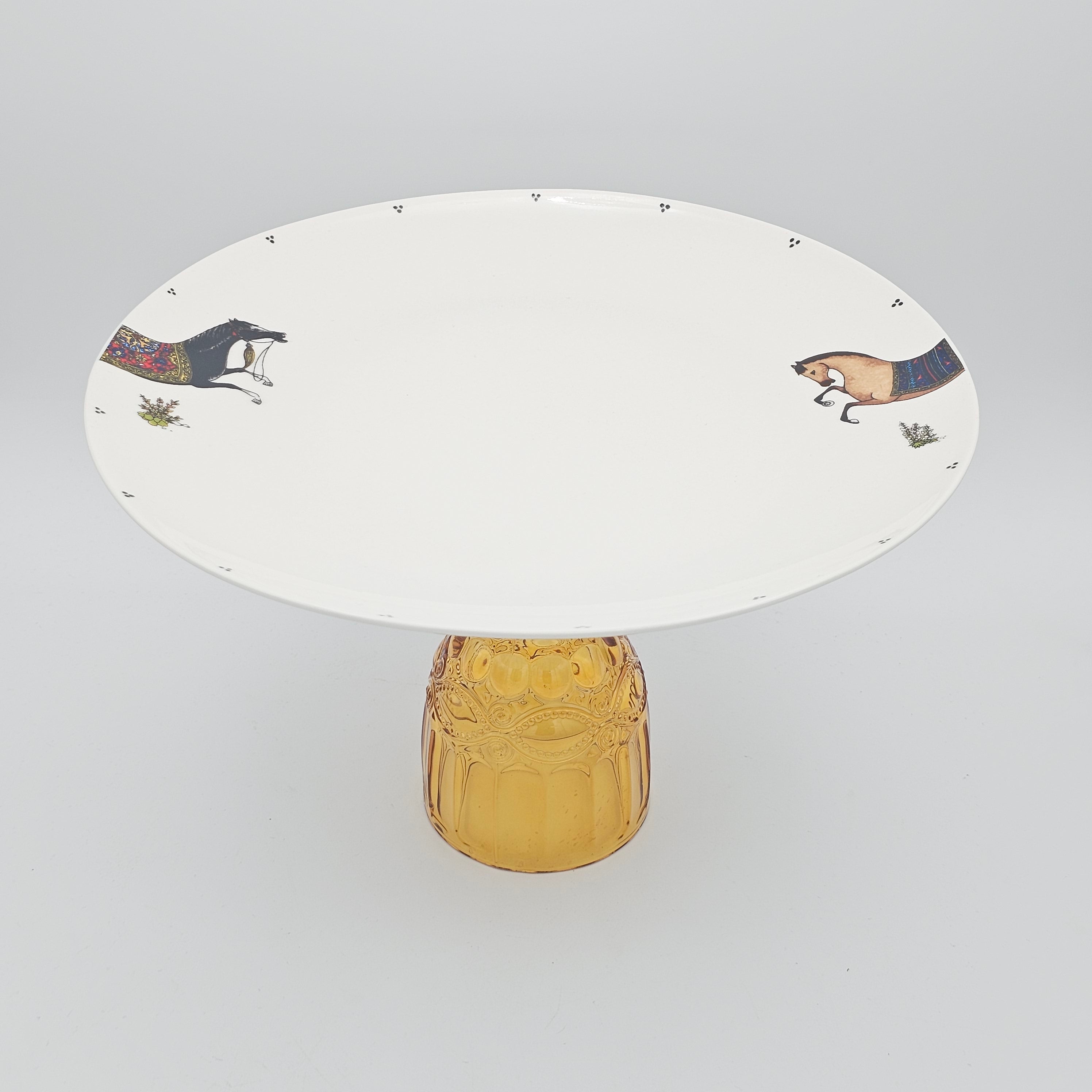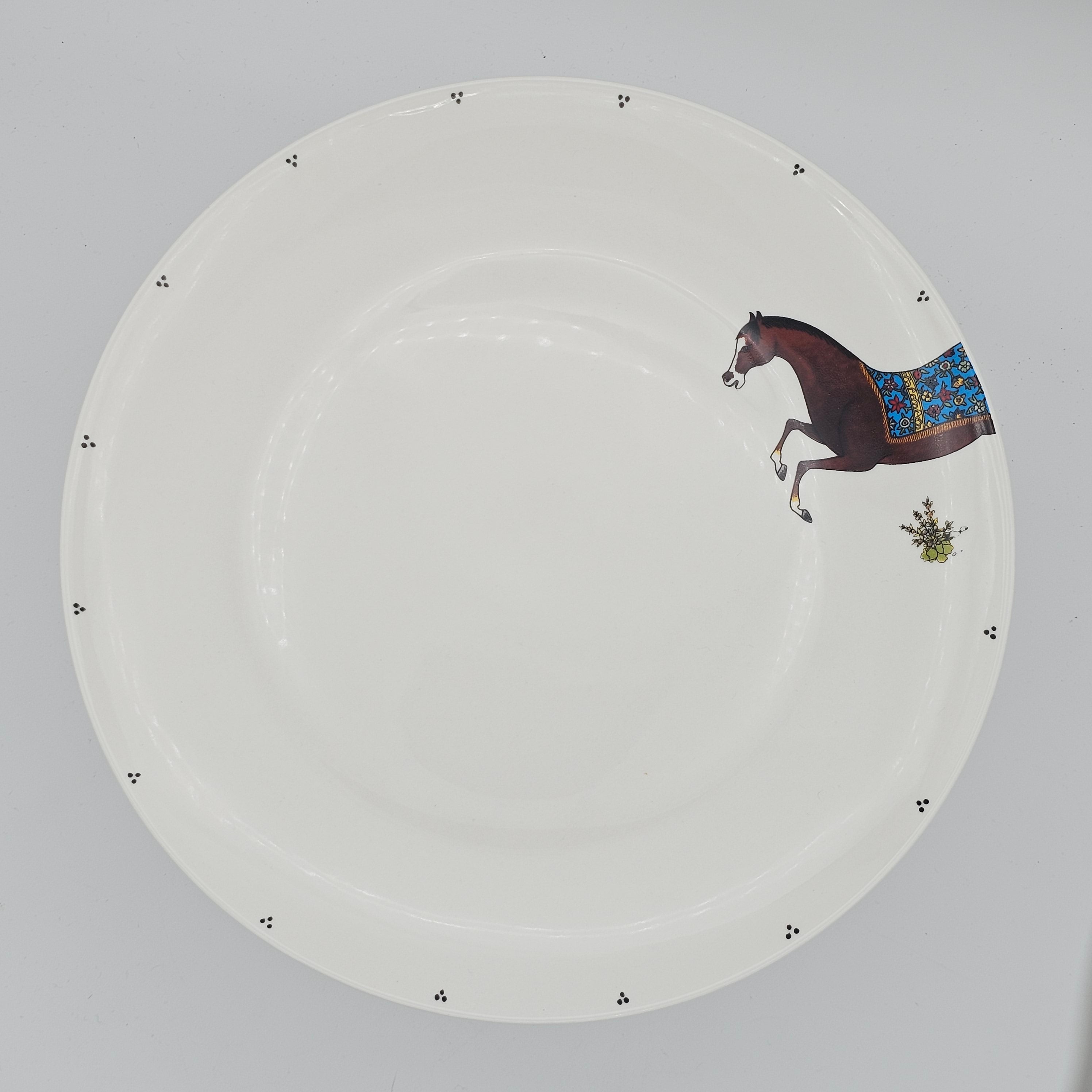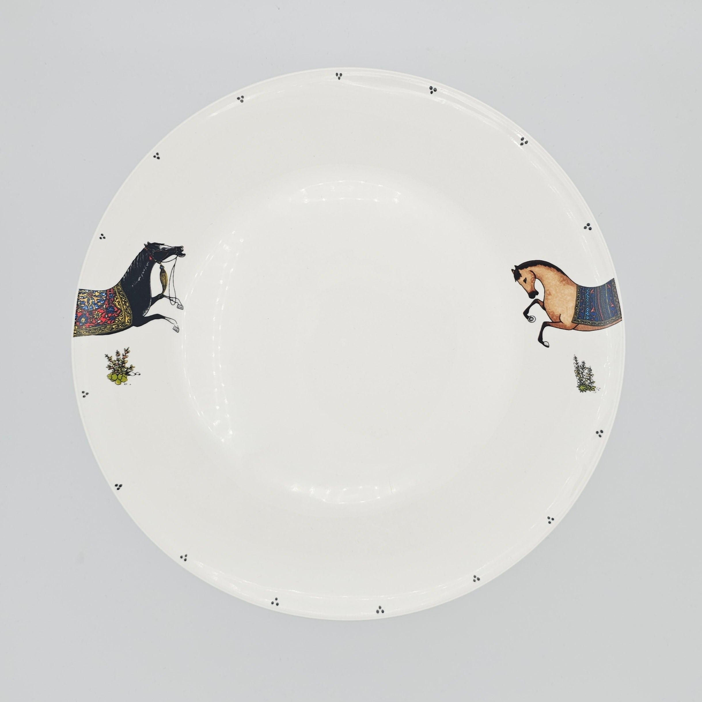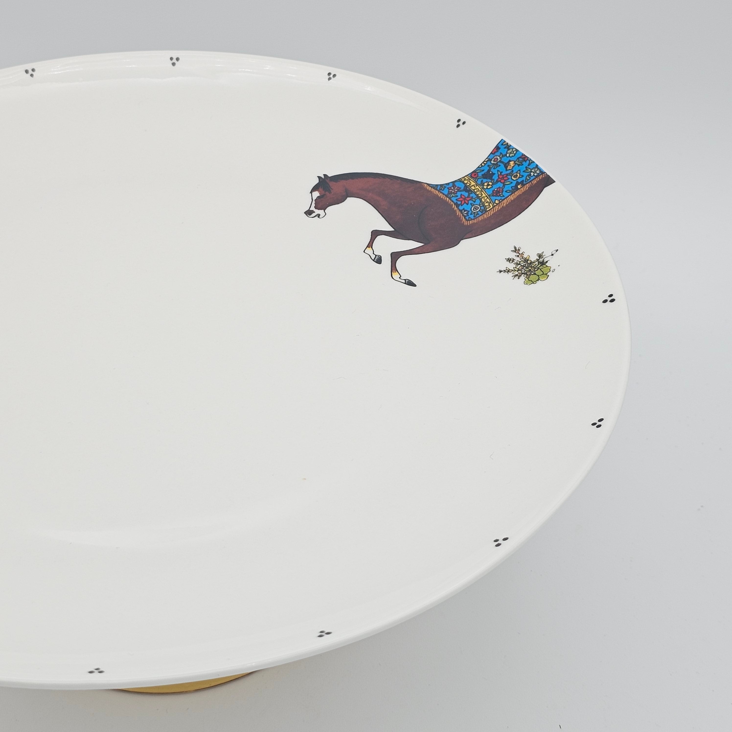 - The tall stand Height is 7" or 17.5 cm and it is desinged with two black and light brown horses