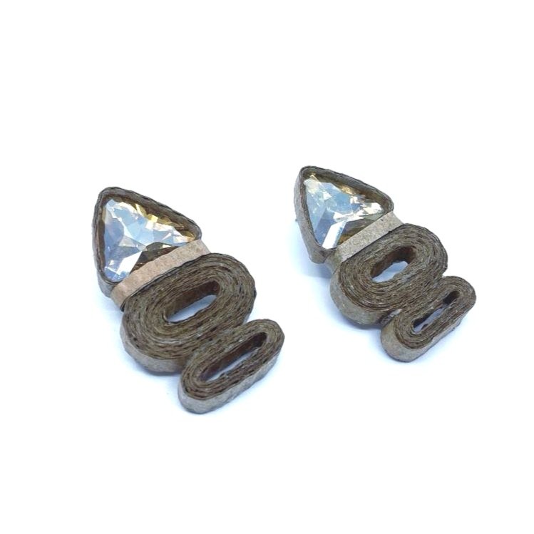 These Golden Arrow Paper Mache Earrings are handcrafted with care, designed to comfortably adorn the earlobe with a secure push-back closure. Measuring 2 inches in length and 1 1/8 inches in width, they offer a stylish yet lightweight accessory ideal for daily wear. To maintain their quality, avoid exposure to water, harsh chemicals, and abrasive cleaners. Store them in a plastic bag when not in use to protect from air and preserve their finish. These earrings also make a thoughtful gift for friends who appreciate unique, artisanal jewelry.