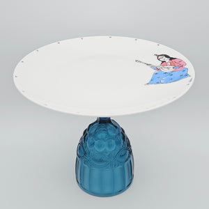 Hand Painted Persian Angel Plate with Pink Glass Stand