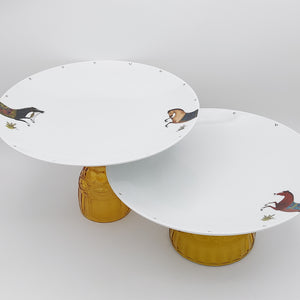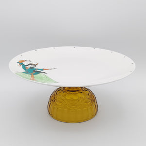 Torkaman Horses Round Plate with Amber Glass Stand